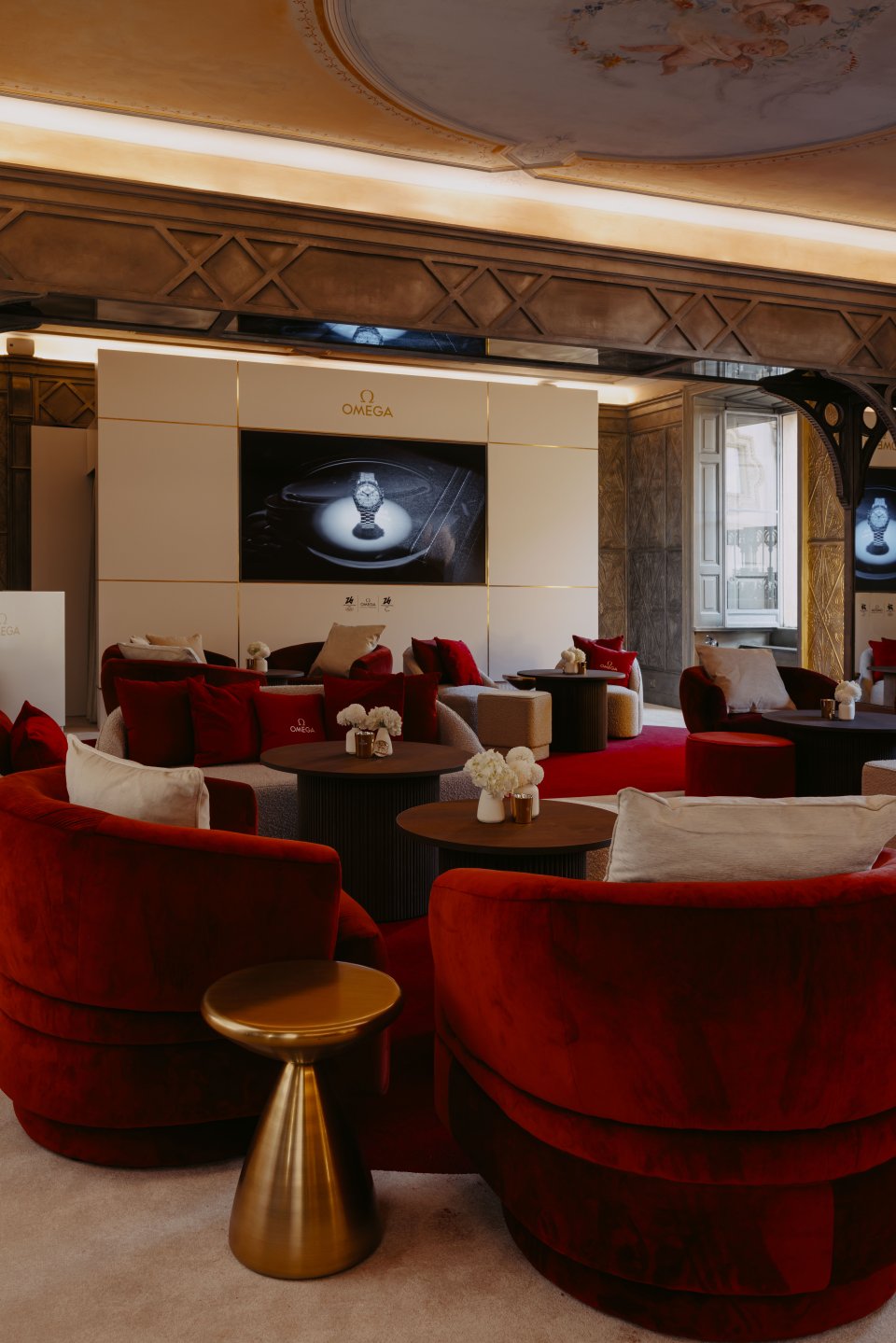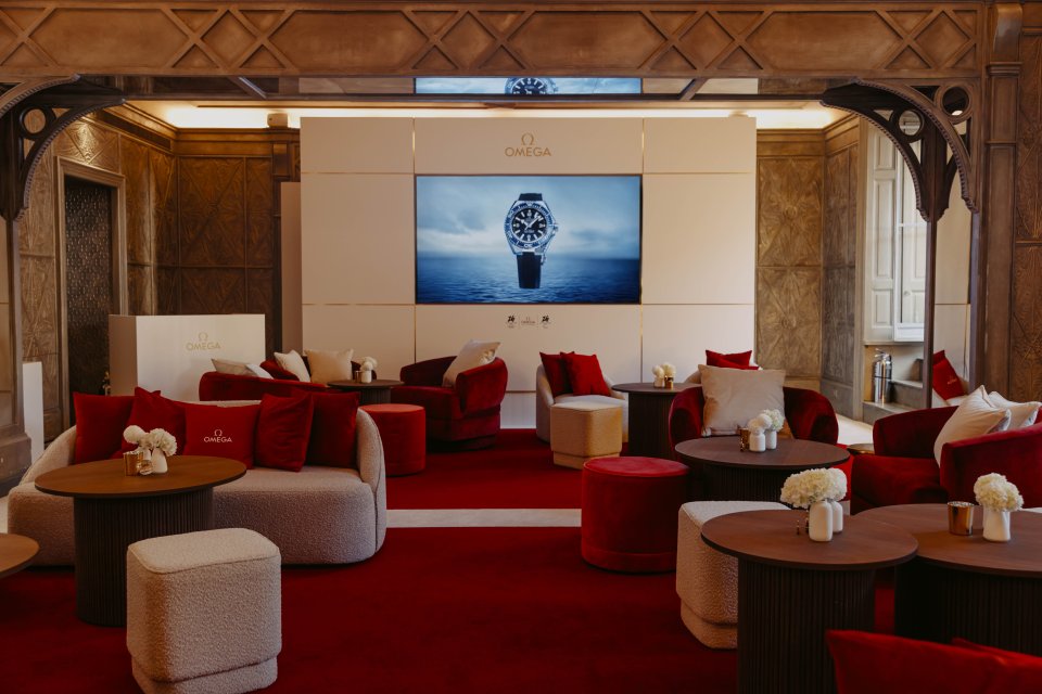 日中はエレガントで没入感ある空間の中、世界最高峰と称されるクラッコの料理を愉しみながら、大型スクリーンで競技観戦するひとときを提供し、夜はゲストともに華やかなイベントが繰り広げられます。こした特別空間を通じて、オフィシャルタイムキーパーとしての94年にわたる歩みを讃える場-それがオメガハウス ミラノです。