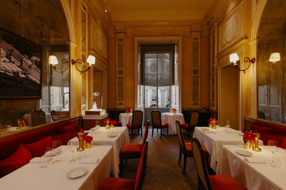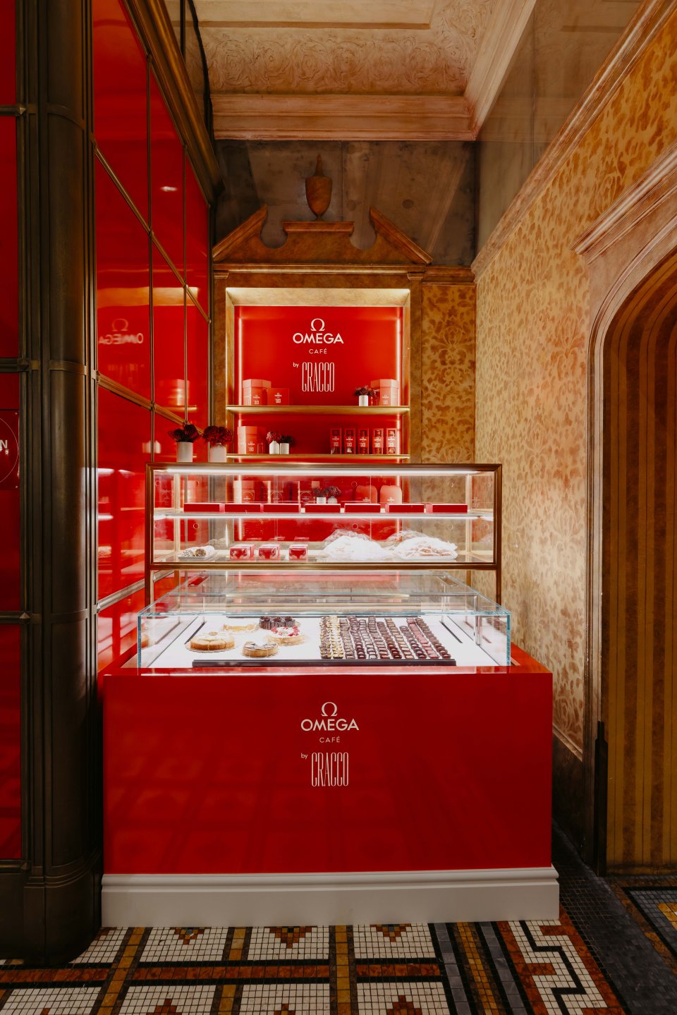 レストラン内へ進むと、 その洗練さはさらに深まり、エレガントな建築美と伝統と革新を融合させた料理が、上質な空間を 演出します。1階のカフェは、オメガのブランディングを施した『オメガ カフェ バイ クラッコ』へと姿を変え、カフェ クラッコ チームによる卓越したサービスのもと、通常営業いたします。