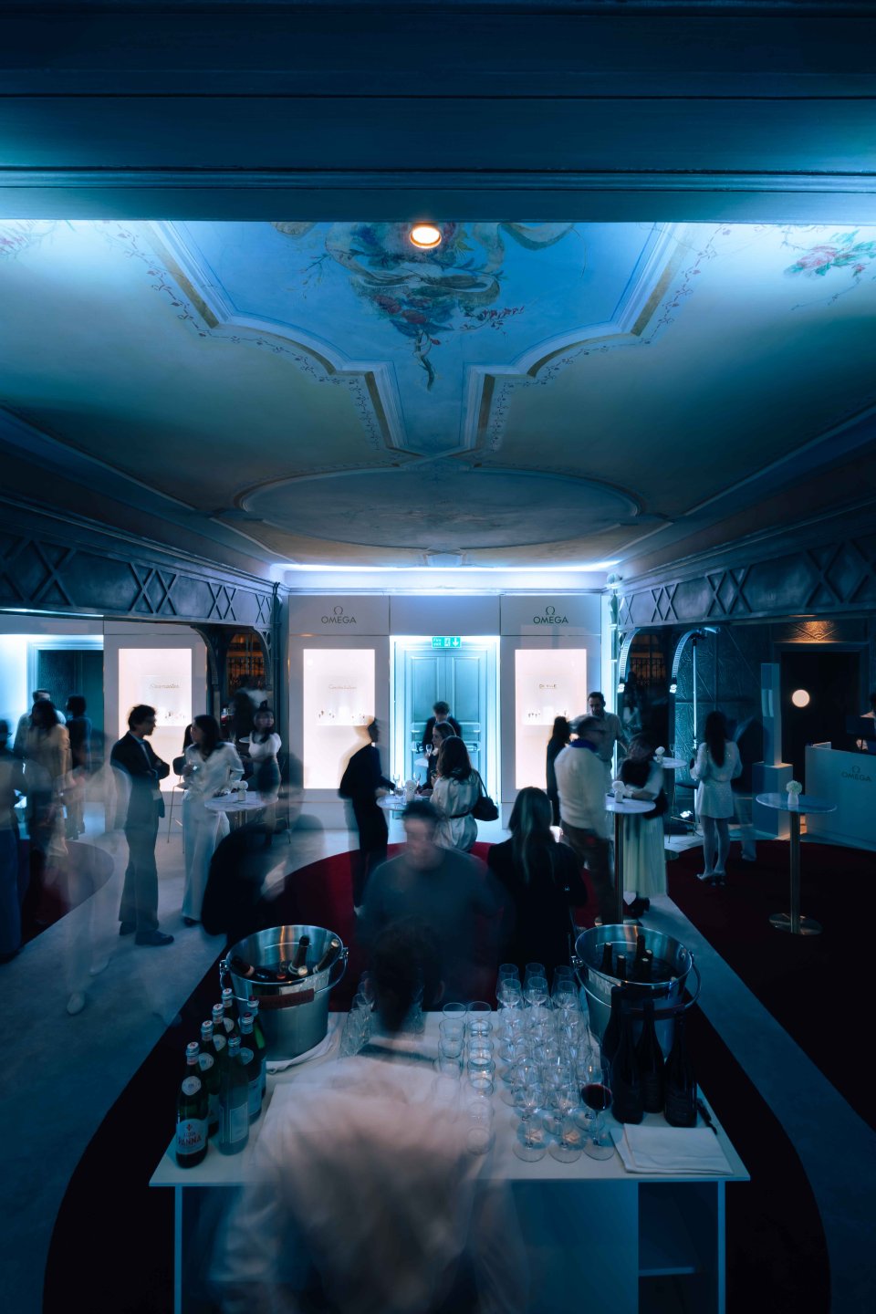 そして夜になると、さまざまなテーマを用いたイベント会場へと一変。ブランドとゆかりのあるセレブリティたちを迎え、オメガならではのスタイルで華やかに イベントが行われます。