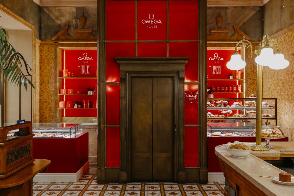 街の名所である、ガレリア・ヴィットーリオ・エマヌエーレ2世内、レストラン「Cracco」に設けられた”オメガハウス ミラノ”。
