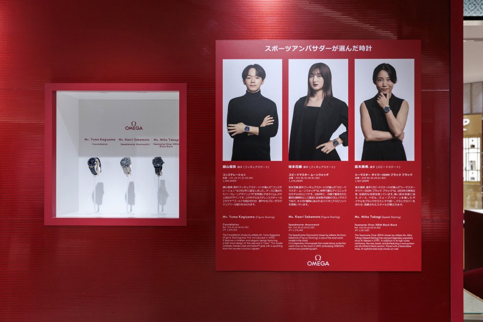 世界の頂点を目指す日本人トップアスリート、鍵山優真選手、坂本花織選手、髙木美帆選手の3名が、オメガの スポーツアンバサダーに就任。その精密さ、パワー、そして卓越した実力で冬のスポーツシーンを先導し続けるこの3選手を一同に、アンバサダーとして迎えられることを オメガは誇りに思います。会場には選手3名のスポーツ アンバサダー就任ビジュアルのほか、選手たちが選んだ 時計も展示しています。