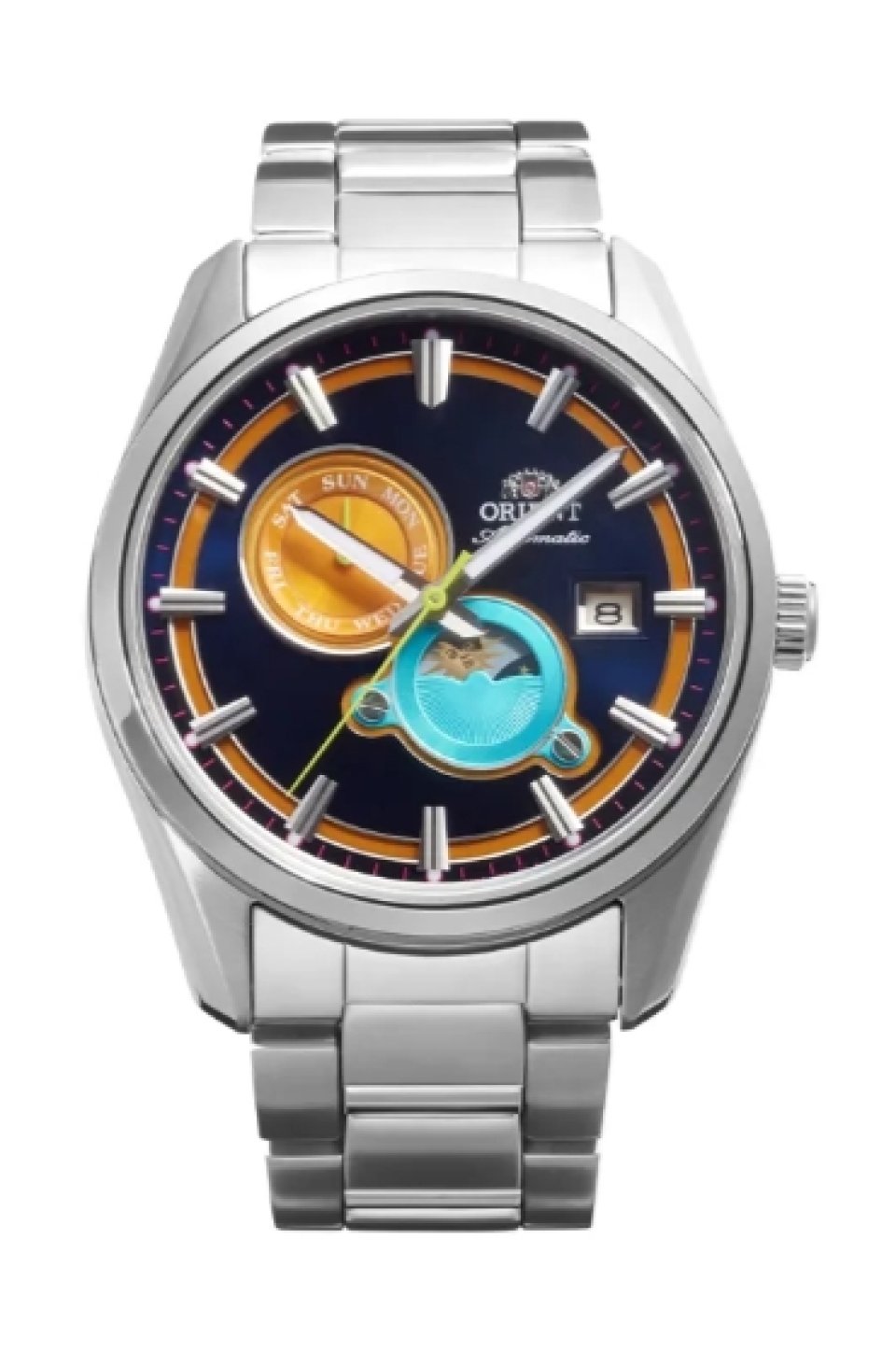「オリエント ストレット」にポップ&メタリックをテーマにした5種類の鮮やかなカラーの限定新作と、そのすべての色をひとつのダイヤルに採用した「オリエントストレット サンアンドムーン」限定が登場
