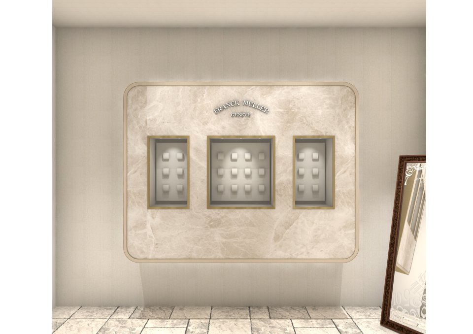 サロンは、フランク ミュラーが掲げる“時の哲学”を空間全体で表現。曲線美を基調とした設えと、落ち着きと気品を兼ね備えたインテリアにより、コレクション一つひとつの個性と価値を丁寧に引き立てます。