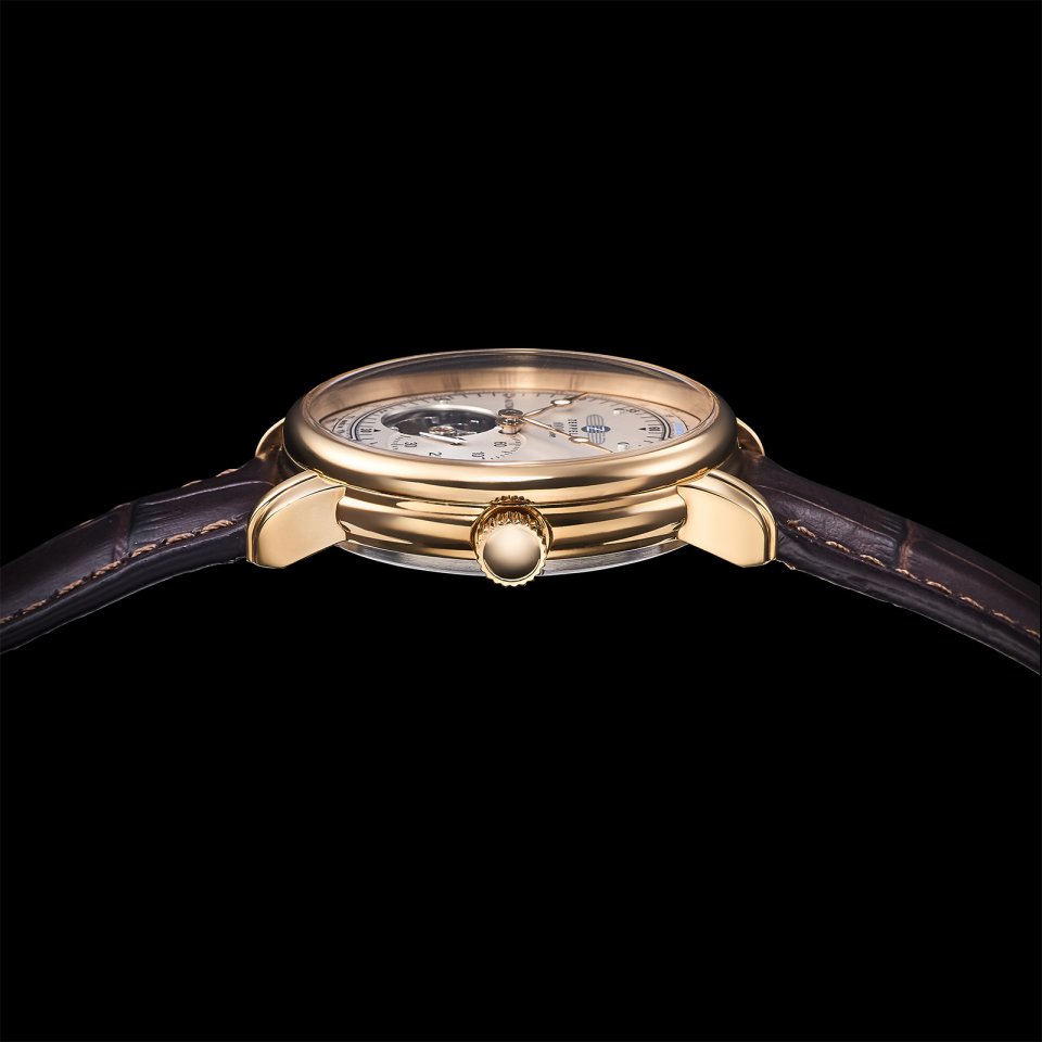 ツェッペリンの新作「100周年記念シリーズ オープンハート オートマティック 7662-8」は、こうした1930年代の空の旅の世界観を表現しました。ゴールドカラーのケースには、かつて空を旅した人々の品格と、時代を超えて受け継がれるクラシックな美意識が息づいています。