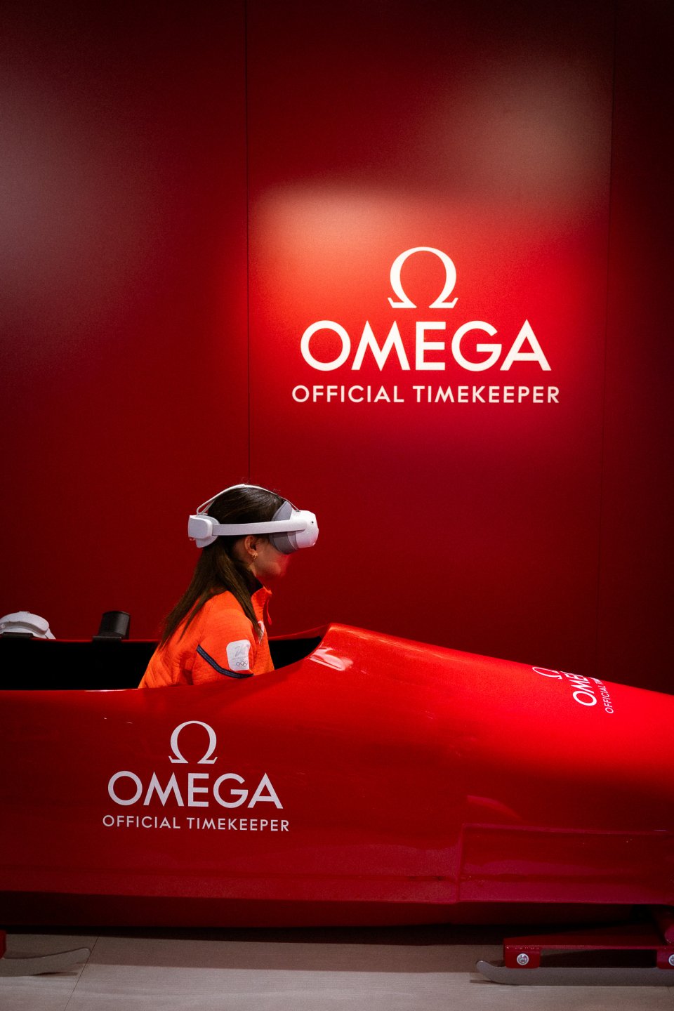 髙木選手もパビリオン内で、自身のアスリート紹介パネルをご覧になったり、オメガの最先端計時技術に触れたりと、数々の展示を楽しみました。ボブスレーVRも体験され、「風や振動まで感じるリアルさに驚きました。」と、臨場感あふれる演出を体感しました。