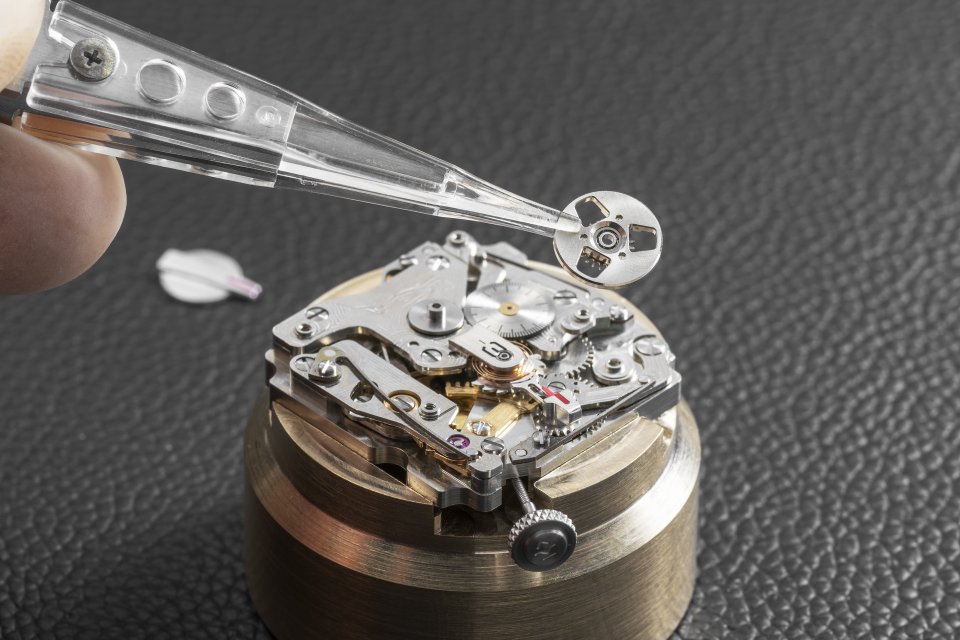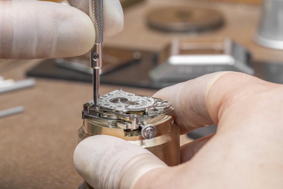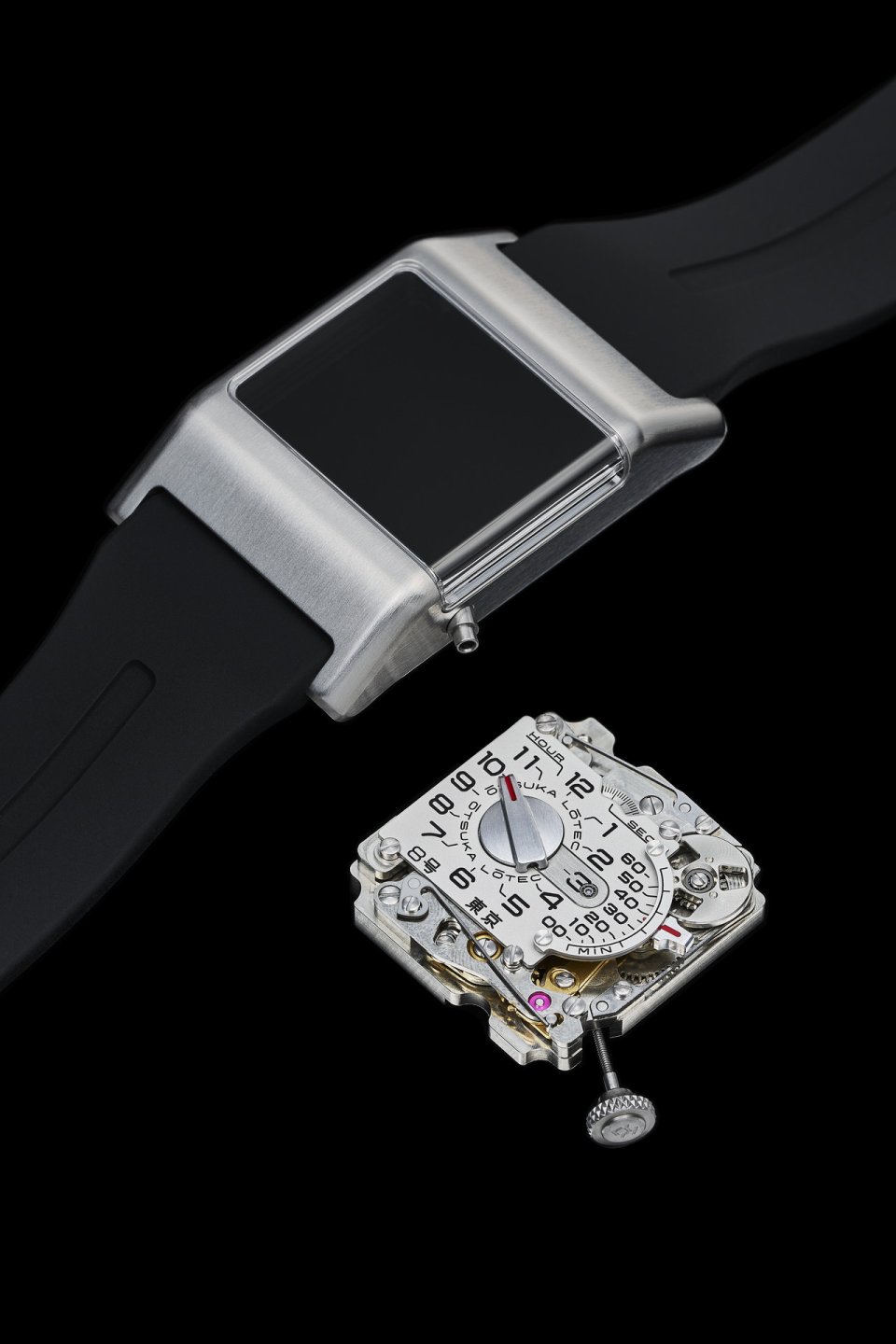 自社製モジュールをMIYOTA製ムーブメントの上に搭載。モジュールの部品数は62点。ミネベアミツミ製の世界最小の外径1.5mmのボールベアリングが1個、外径2.5mmのボールベアリングが2個使われている。