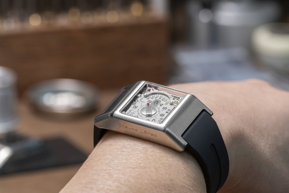 音楽制作に使うミキサー機器の意匠を、大塚ローテックらしいレトログレードとジャンピングアワー機構を組み合わせました。