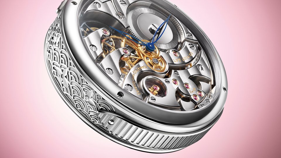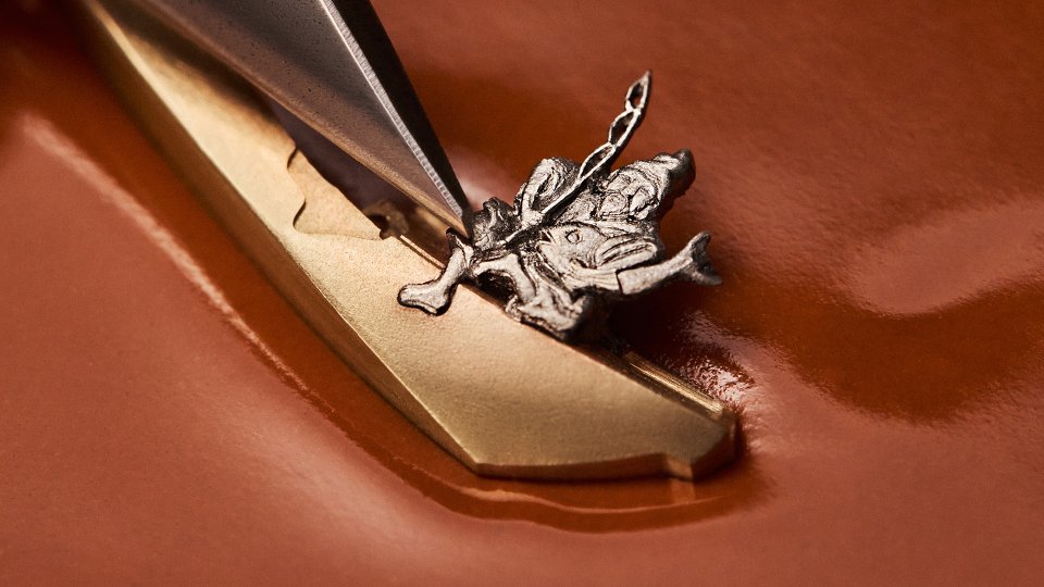 この2つの職人技──驚くほど緻密に描き出されたダイアル上の動く情景と、同じく卓越した技巧で彫刻されたケースバックのメカニカルな美しさが一体となり、表と裏という2つの視点から、絵画さながらに手仕事の妙を際立たせています。