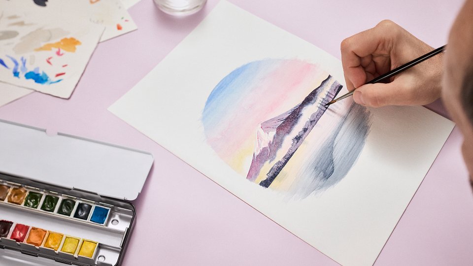 富士山そのものもまた、サヴォアフェールの結晶です。ミニチュアサイズで描かれた富士山は、流麗な筆致と繊細なグラデーションによって際立ちます。意図的に背景に溶け込ませた部分もあり、光や反射、情感と相まって、この日本を象徴するランドマークのスピリットに忠実な、幽玄な情景を描き出しています。