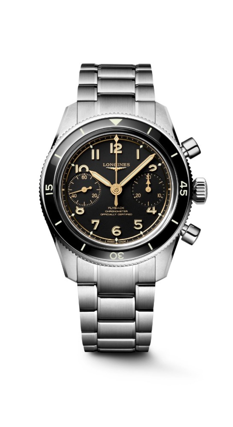 ロンジンの「パイオニア精神」を象徴するパイロットウォッチの最新作であり、ロンジンが1930 年代に特許取得のフライバック機能を搭載した「ロンジン スピリット パイロット フライバック」着用して来場。