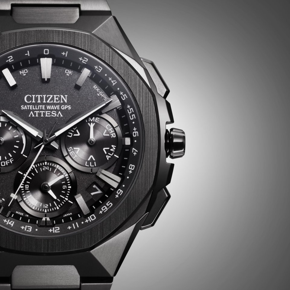今回受賞した『シチズンアテッサ』 ACT Lineエコ ‧ドライブ GPS衛星電波時計(以下、アテッサ)は、シチズンの⾼度なチタニウム加⼯技術でヘアライン仕上げを施した⼋角形ベゼルの頂点とケースの稜線を合わせ、ケースとバンドに一体感を持たせた美しいフルフロースタイルが特⻑です。太陽光や室内のわずかな光で発電するエコ‧ドライブは定期的な電池交換が不要でサステナビリティに優れています。