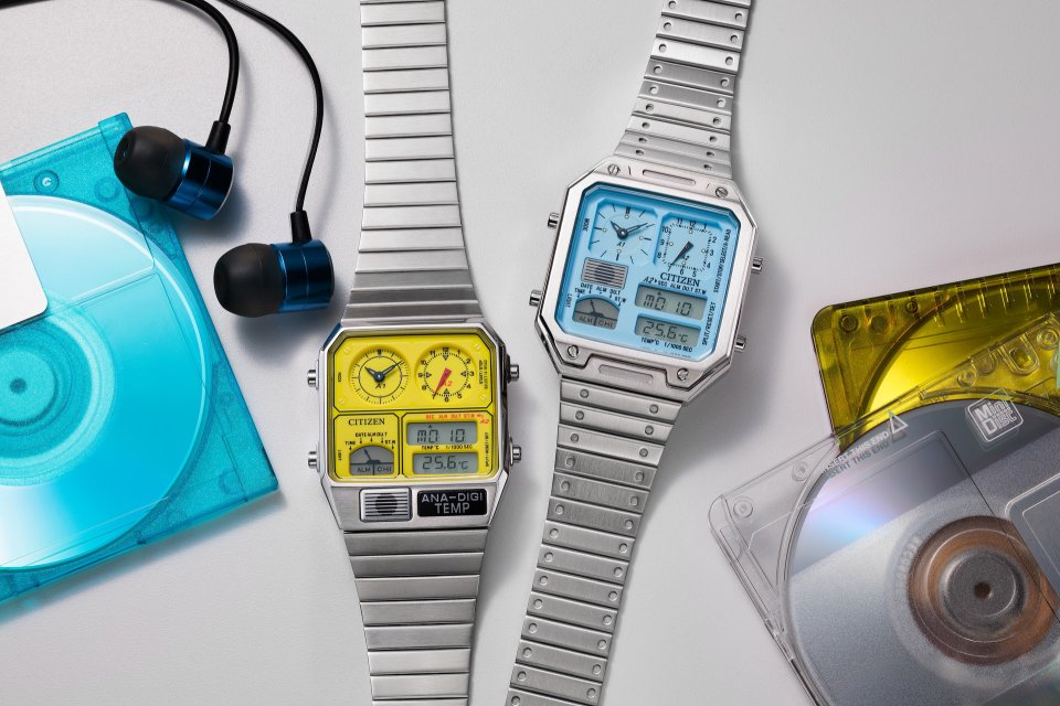 1990年代テイストの色使いや文字板に、夜光塗料と印刷を重ねた、遊び心と機能性を兼ね備える全4モデル