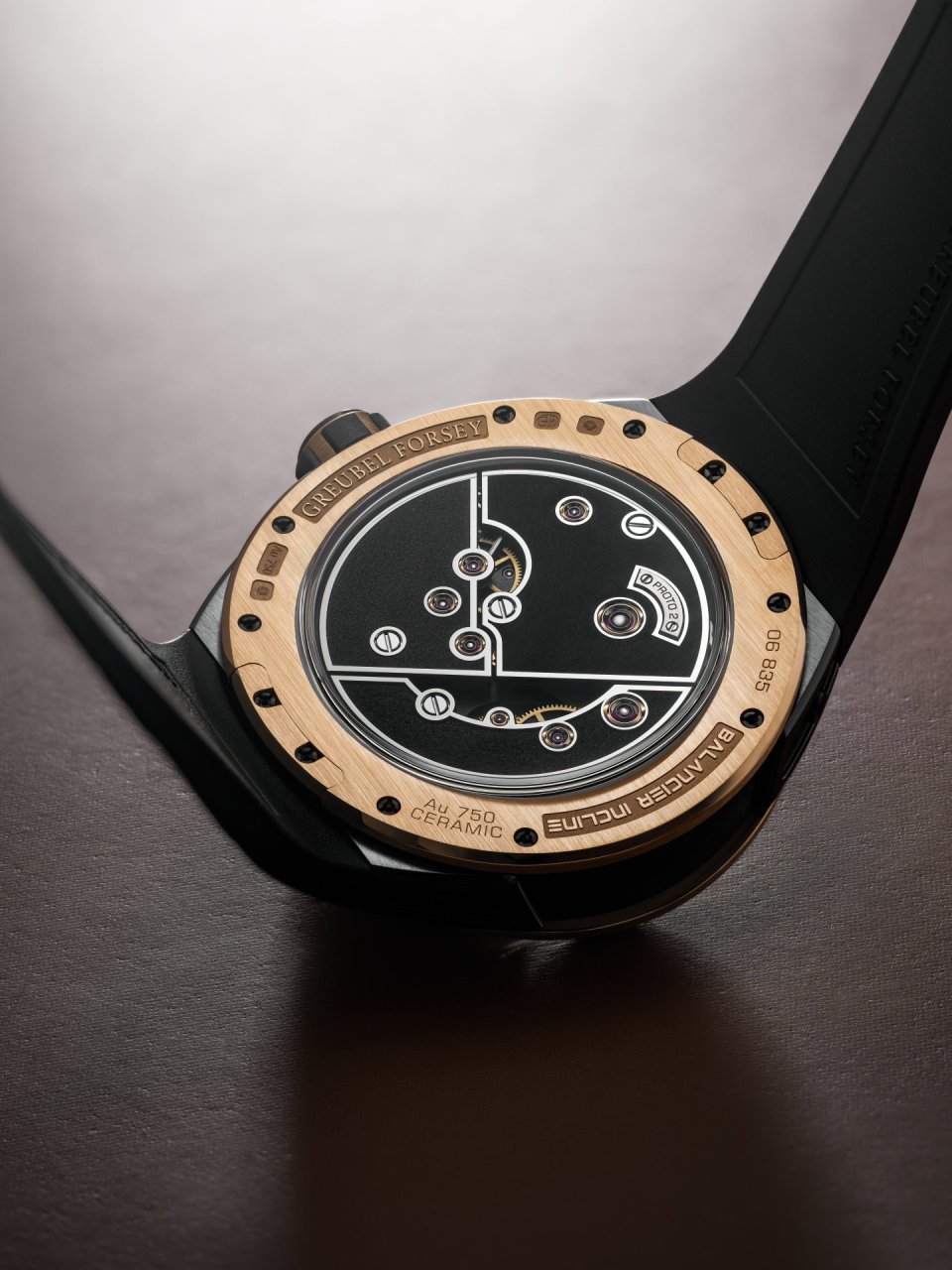・“Balancier Incline” “Au750” “Ceramic”と“Greubel Forsey”の刻印