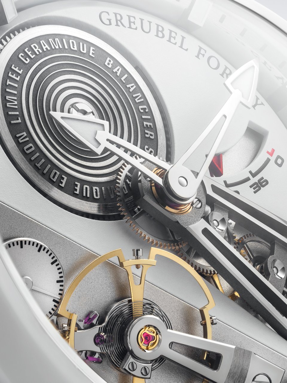 ・“Balancier Incline” “Ceramic”と“Greubel Forsey”の刻印