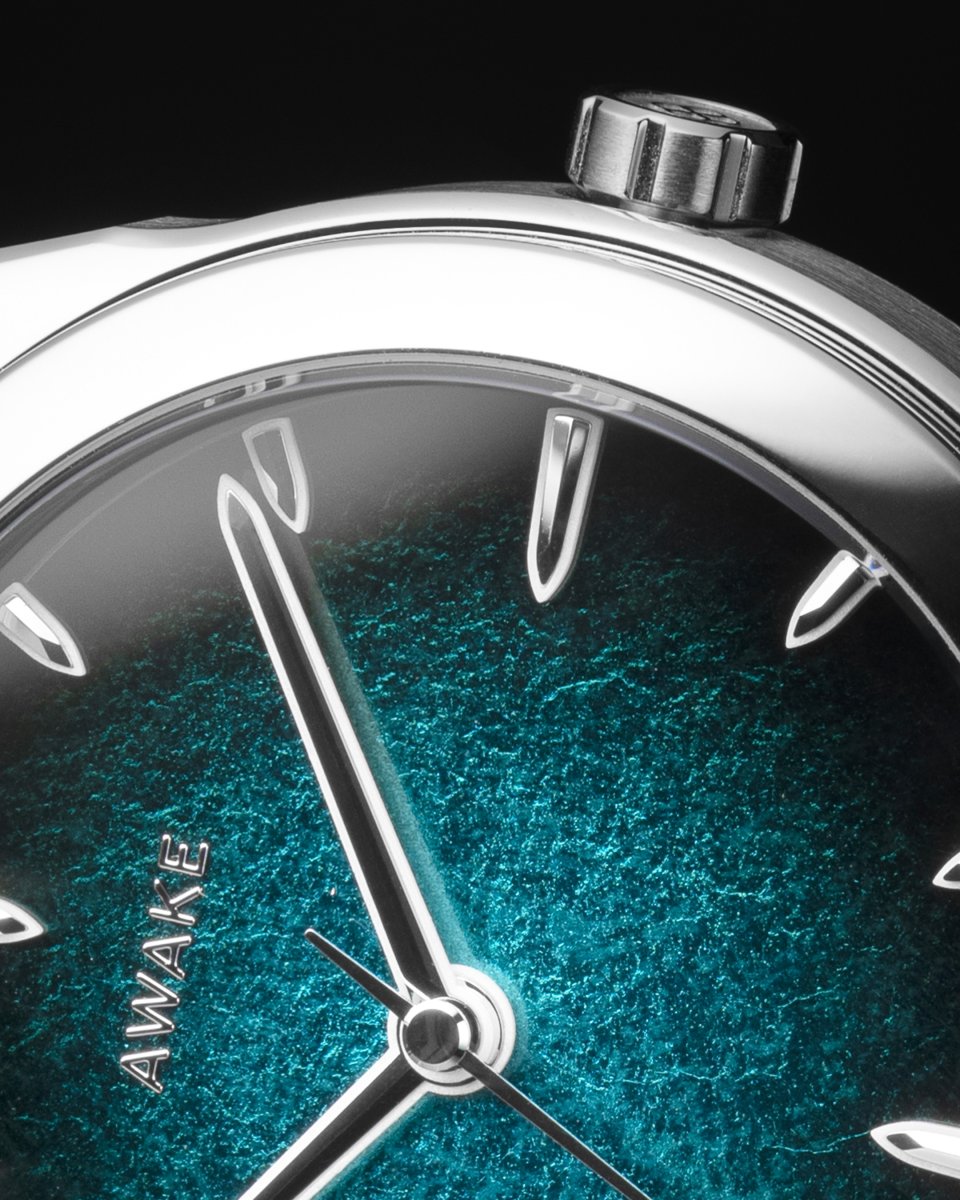 このブランド独自の文字盤は、ベトナム漆、純銀箔、天然顔料を組み合わせた完全手作業によって制作されています。これは、AWAKEのアーティスティック・クラフトにおける技術と創造性への飽くなき探究を体現しています。
