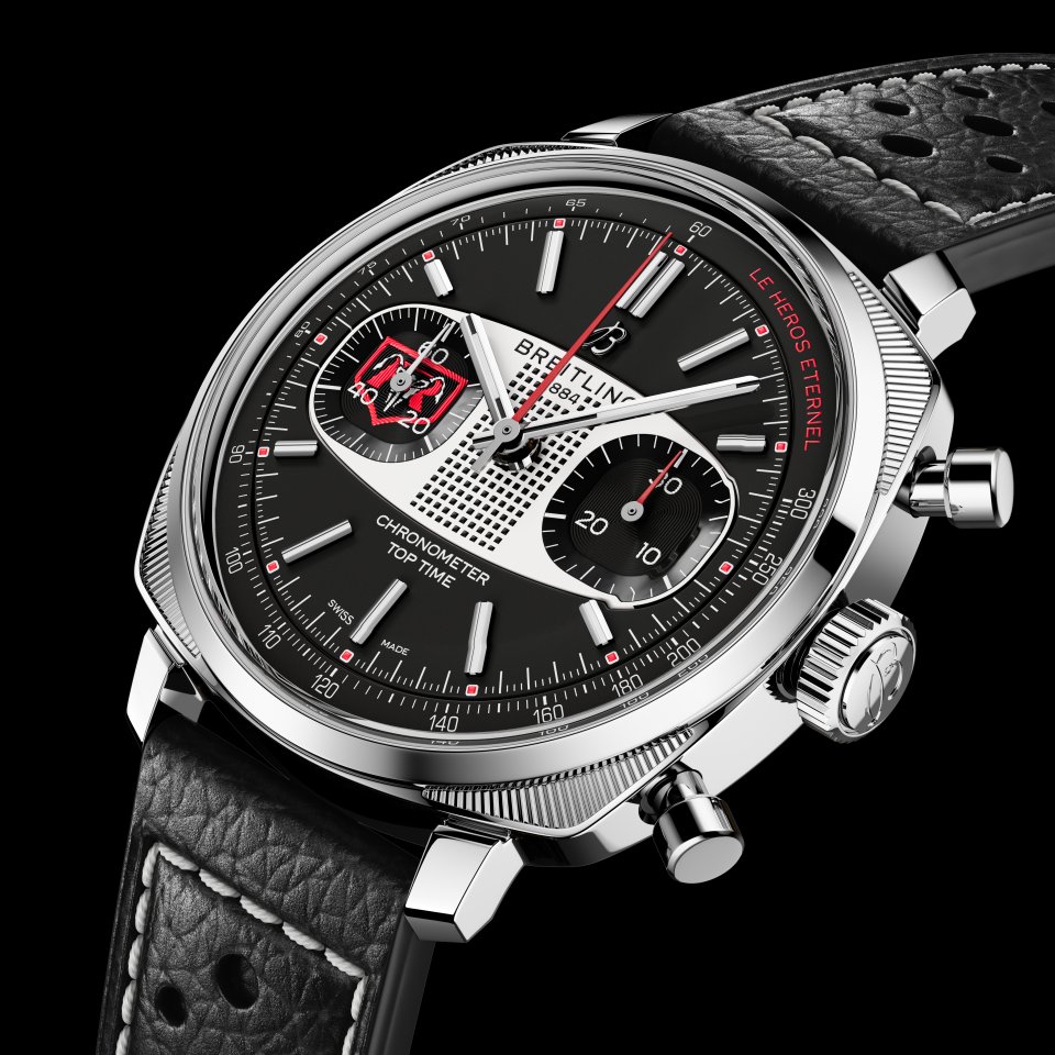 1960年代に生まれ、その後スピードとスタイルの象徴として広く人気を集めたトップタイムは、常に自由と躍動感を体現してきました。そして今、その精神は、日本限定モデルとして受け継がれます。永遠のヒーローへのオマージュとして誕生した「トップタイム B01 レーシング 仮面ライダー リミテッドエディション」です。