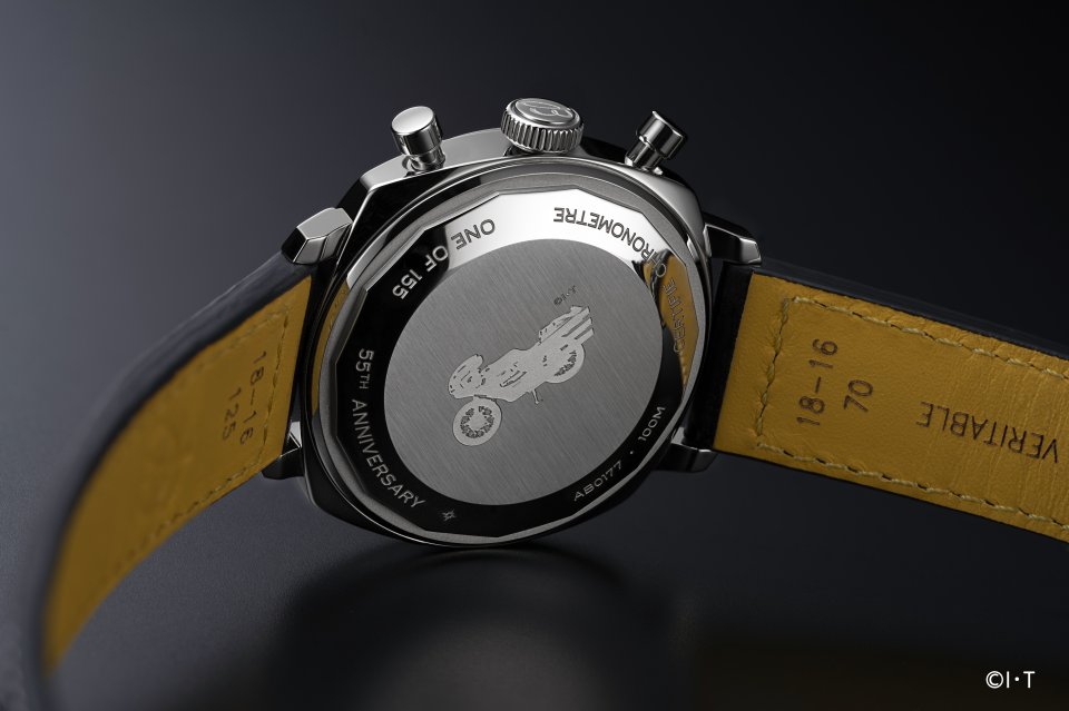 ケースバックにはサイクロン号のシルエットと“ONE OF 155”の刻印を施し、限定モデルであることを静かに語ります。さらにエンブレムを配した専用ウォッチボックスを用意し、特別感をいっそう高めました。
