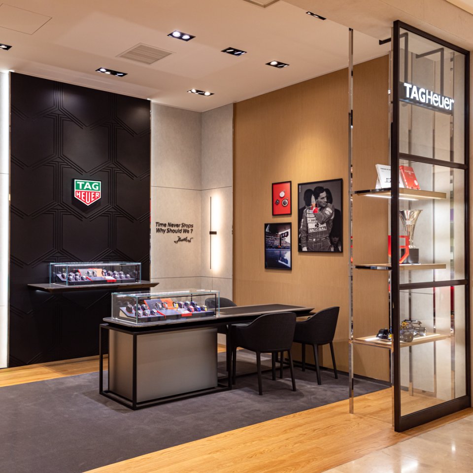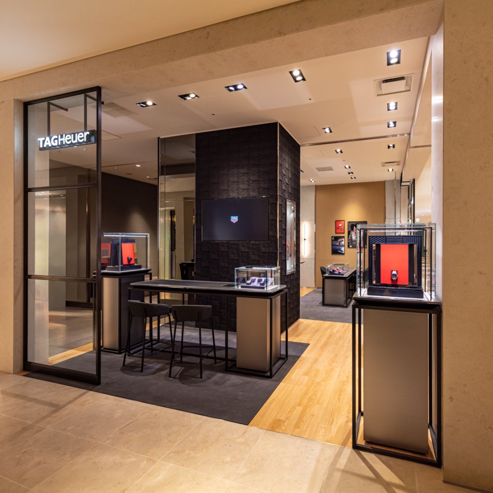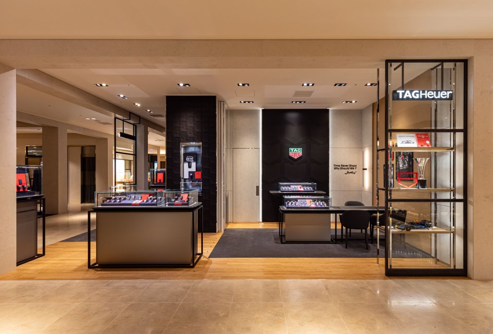 また、商品ディスプレイも再設計され、各コレクションがより見やすく配置されるとともに、照明やゾーニングを最適化。タグ・ホイヤーの歴史や革新性を感じながら、タイムピースの魅力をより深く体験いただける空間となっています。