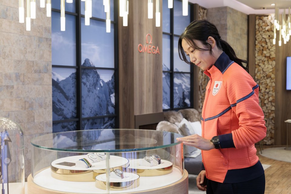 From : OMEGA (オメガ )オメガ スポーツアンバサダー 髙木美帆選、スイスの雪山を眺めるシャレ―を想わせる、オメガブティック 六本木ヒルズを訪問