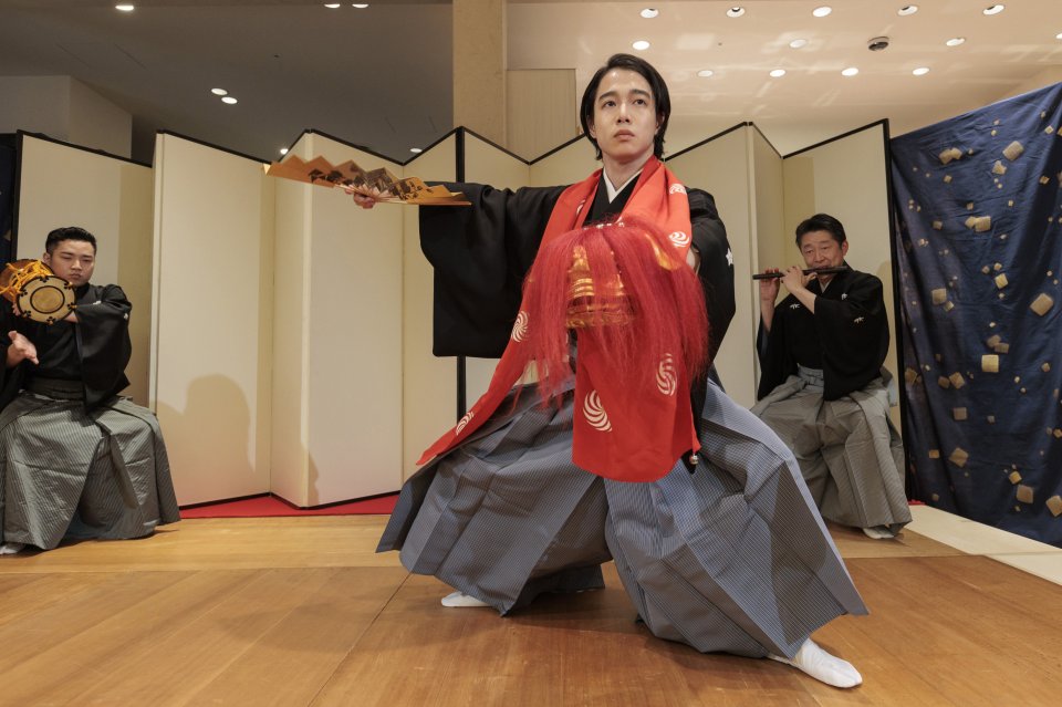 ブティックの特設ステージで 披露された演目は、この日のために選んでいただいた“石橋”を特別にアレンジしたもの。牡丹と獅子も登場する作品で、このグランドオープンを盛大にお祝いしました。舞台上には笛と鼓奏者も出演し、臨場感あふれるエクスクルーシブな体験に会場はひときわ高揚感に包まれました。
