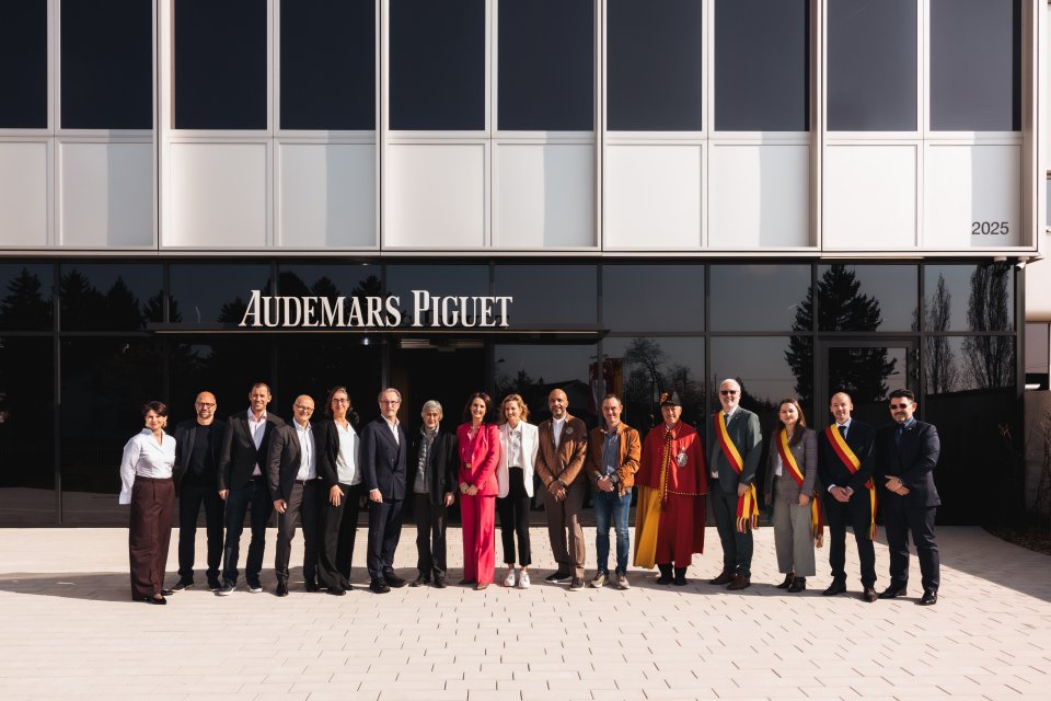オーデマピゲは、この度新たな製造拠点をメイランに開設しました。ケースおよびブレスレットの製造部門に加え、新技術開発の拠点を統合した同施設は、各分野の専門性を結びつけながら、生産フローの最適化を図るものです。3 年に及ぶ建設期間を経て完成したこの新施設は、メイランにおける従来施設の生産面積を約4倍に拡張する規模を実現しました。約200 名のスタッフがすでに移転を完了しており、柔軟性に優れ、かつ環境に配慮した最適なワーキング環境が整備されています。落成式は2026 年3 月19 日、メイランにて開催され、地域および州の当局、FdMP 建築事務所の代表者、そしてオーデマ ピゲの取締役会および経営陣が出席しました。