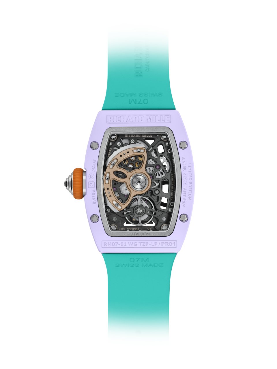 新たなRM 07-01 カラーセラミックスから放たれる一つひとつの輝きが記憶を呼び覚まし、その象徴的な存在が宿す創造性を表現しています。
