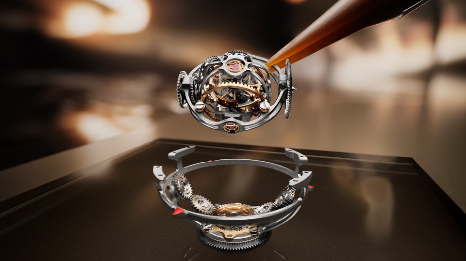• 3軸トゥールビヨン:ジャイロトゥールビヨン・ストラトスフェアは、 3軸構造により、想定できる位置の 98%をカバーし、前例のない精度を保証