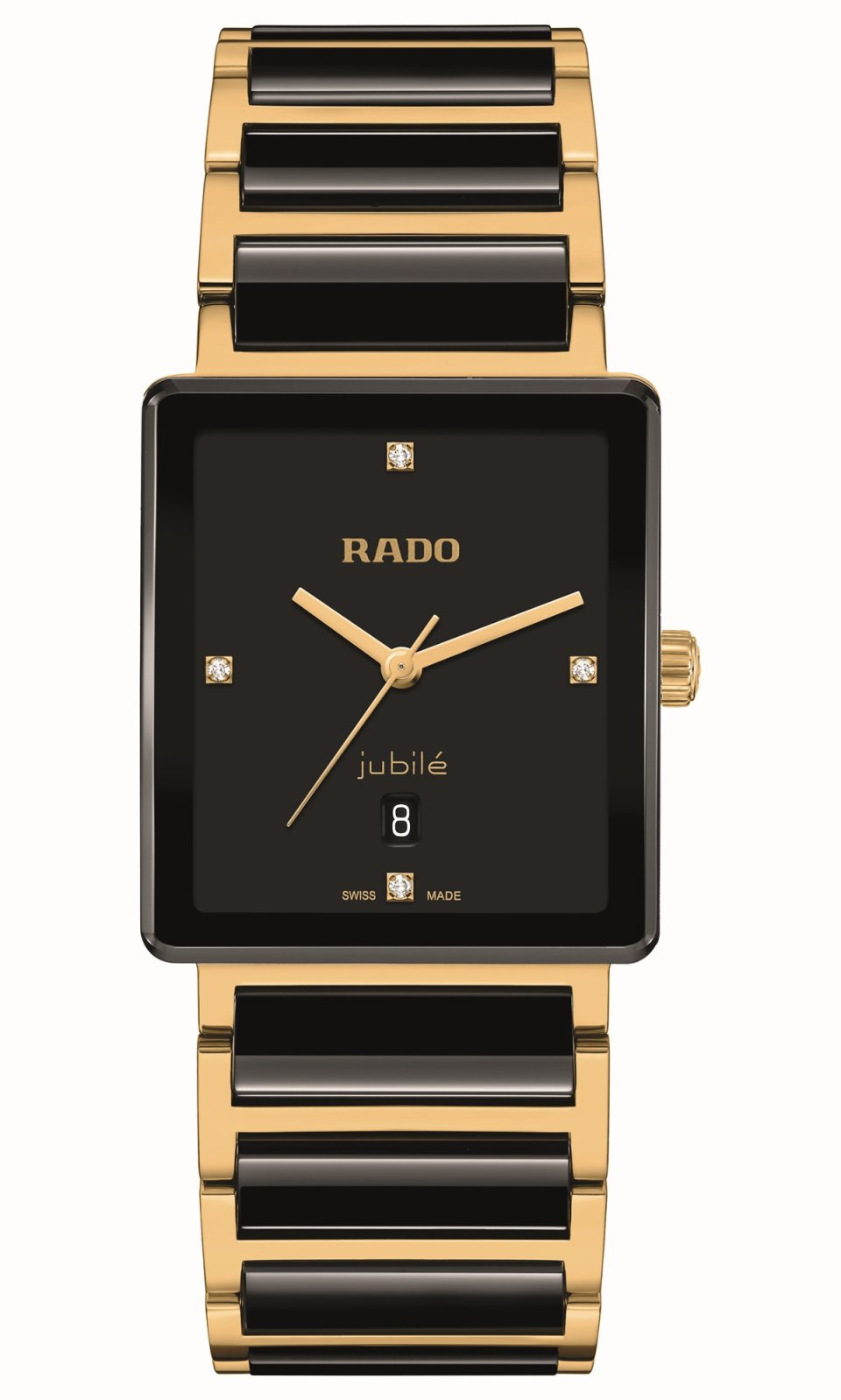 ・ブラック、イエローゴールドプリントのRadoおよびJubiléのロゴ
