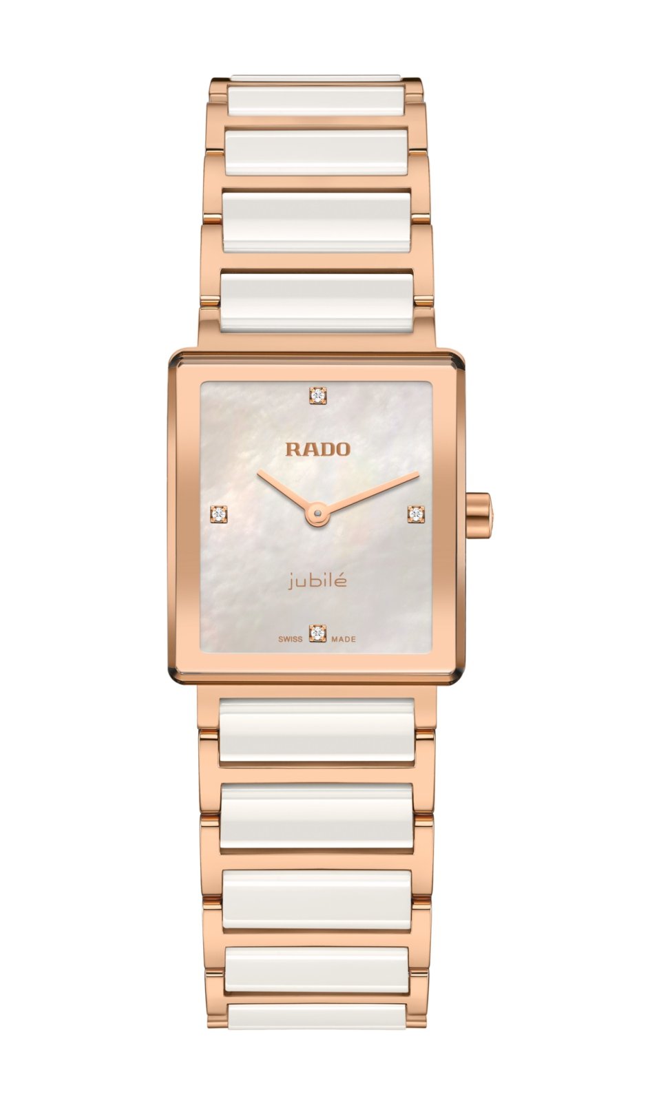 ダイヤル:ホワイト マザーオブパール、ローズゴールドプリントのRadoおよびJubiléのロゴ