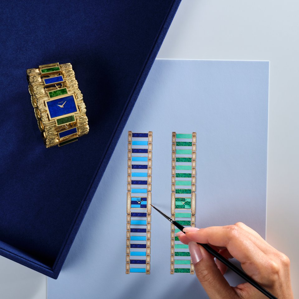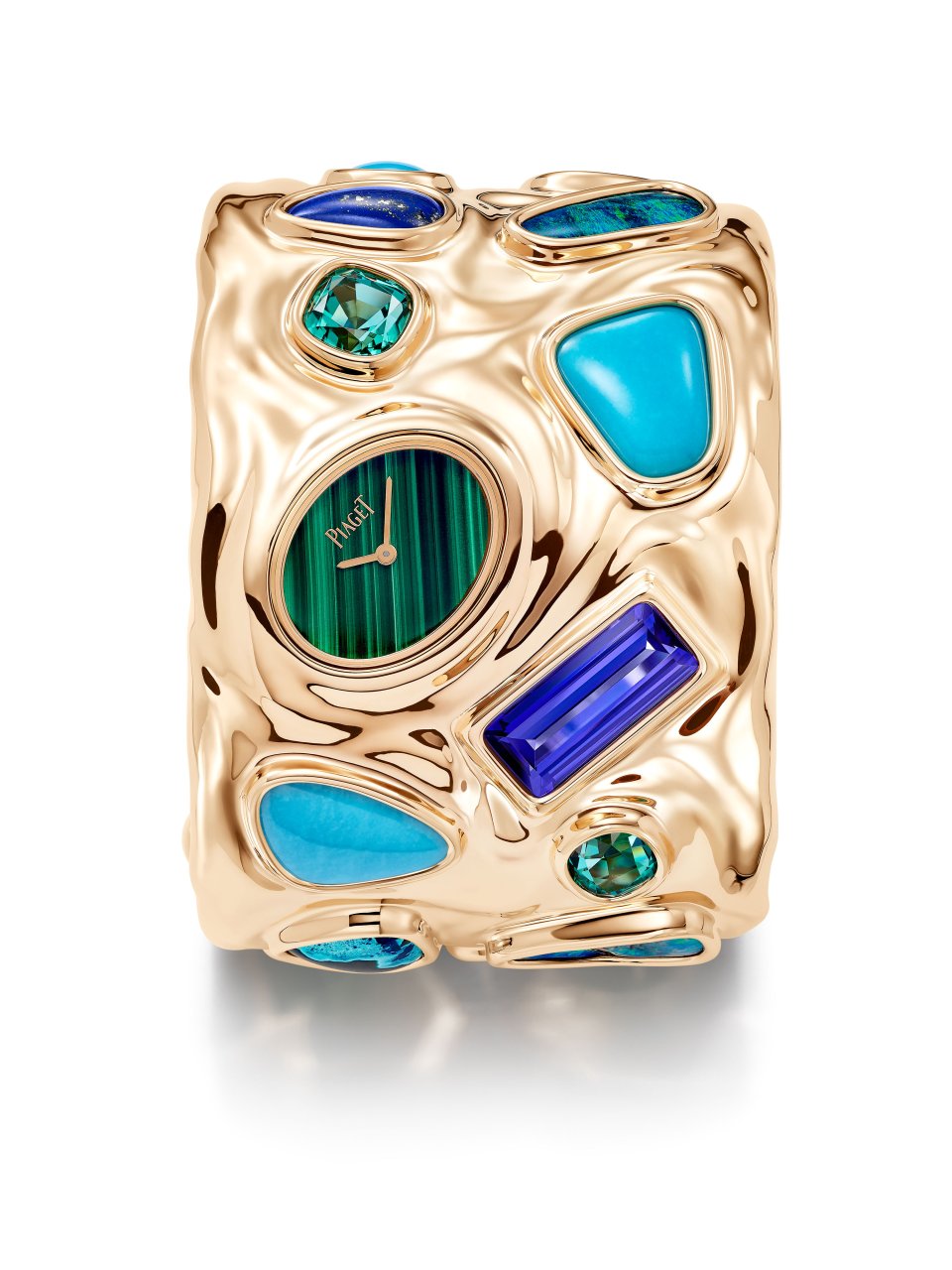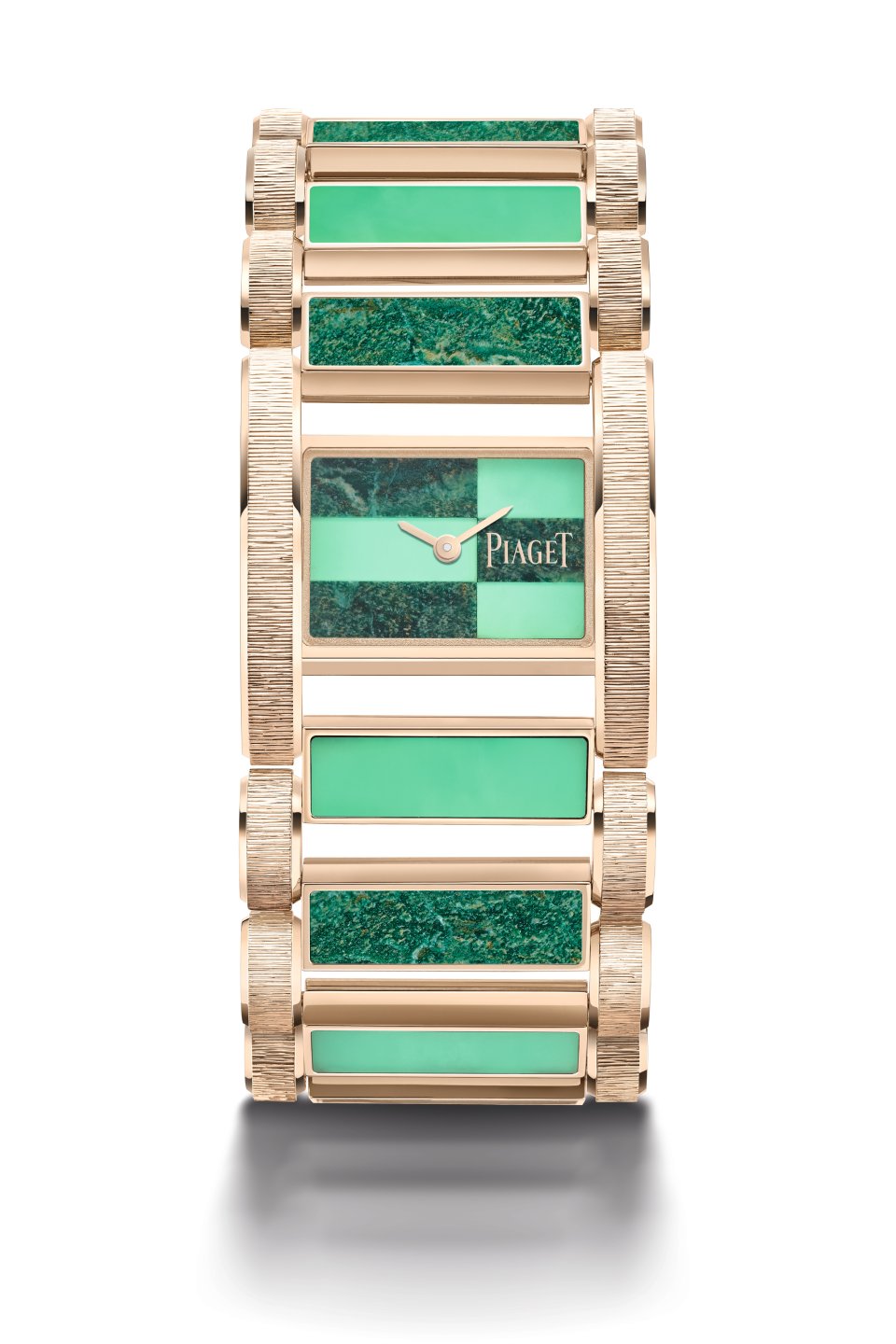 1963年、ピアジェが果敢にもラピスラズリ、ターコイズ、マラカイト、タイガーズアイなどの鮮やかなオーナメンタルストーンでウォッチの文字盤を装って以来、メゾンは、エクストラレガンザの重要な要素である色彩に向けた独創的なアプローチで有名になりました。大胆な色彩、ポップアート風のマザーオブパールとオニキス、あるいはラピスラズリと翡翠のモダニストかつ生彩に満ちた構成による予期せぬ大胆な色彩の躍動は、ピアジェが1969年に発表した画期的な「21st Century」コレクションの与えた衝撃をさらに増幅し、ジュエリーウォッチを現代アート作品かつ文化的象徴へと変貌させました。