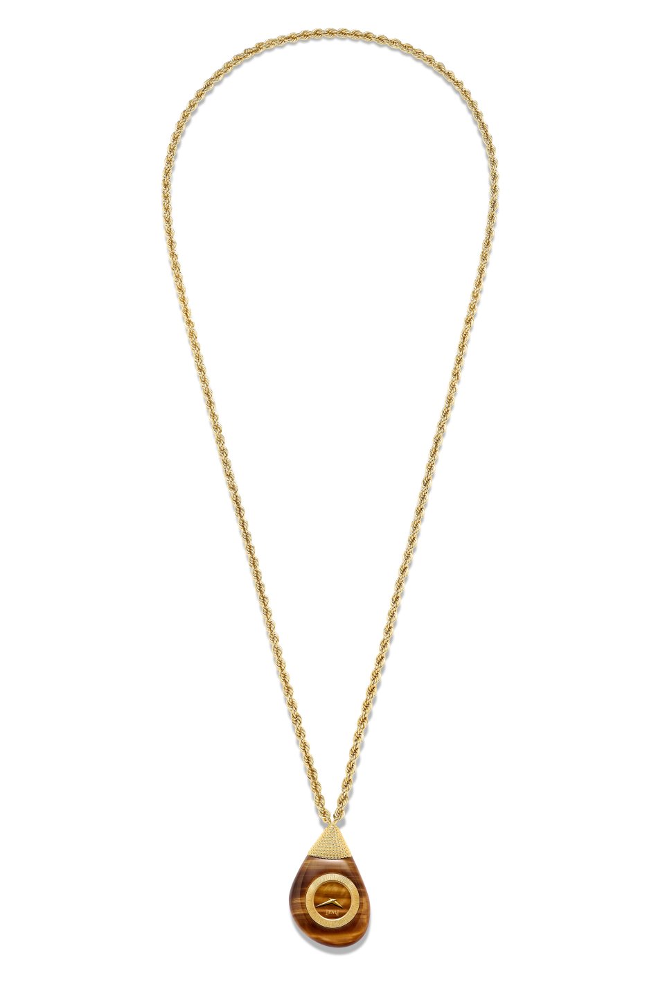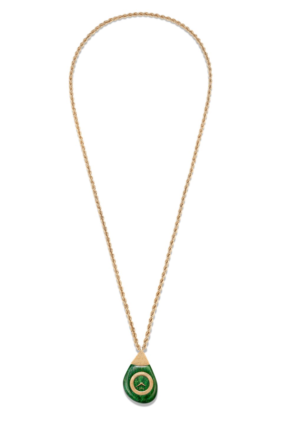 ピアジェは今日、ウォッチズ&ワンダーズ 2026に向けて、同じ創造的なエネルギーをモダンなスウィンギング ソートワール コレクションに注ぎ込んでいます。 タイガーズアイ、ヴァーダイト、ピーターサイトの3つのオーナメンタルストーンからシームレスに掘り出された作品は、「スウィンギング ペブルズ」と名付けられました。それぞれのペンダントウォッチは、1枚の石から彫り出され、自社製ムーブメントを収めるために繊細にくり抜かれた後、滑らかな小石のようなケースを形成するように閉じられます。しなやかに撚り合わせたゴールドチェーンに下がるそれぞれのペンダントは、日常生活のための金細工とチェーン製作におけるピアジェの専門知識に捧げる賛辞です。現代的な感性で再解釈されたこれらの新しいスウィンギング ソートワールは、ピアジェの芸術性と動きの世界を洗練された姿で表現します。これらが象徴していることは、大胆で、触り心地がよく、型破りな楽しさという、ピアジェの伝統である革新の継続です。