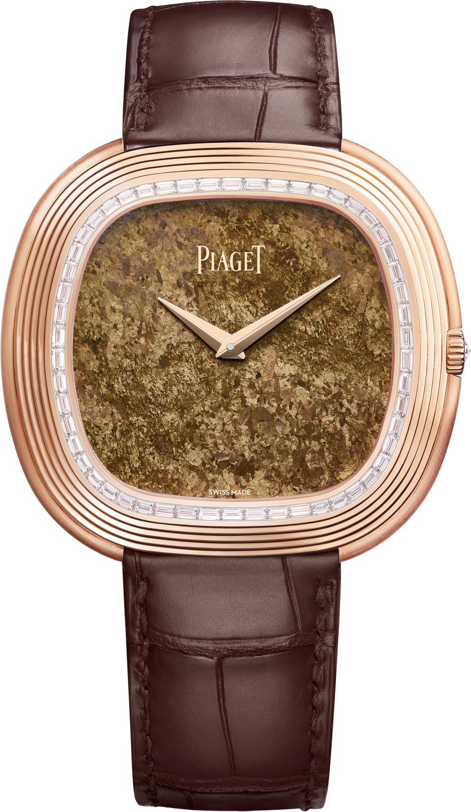ピンクゴールドをあしらった、豊かでまろやかなブラウンモデルには、ハニーカラーのタイガーズアイが組み込まれており、1960年代のスタイルセレクターを再現したメゾンは、4色から選べるケースと、タイガーズアイ、ブルーソーダライト、翡翠、オニキスの4種類のオーナメンタルストーン、およびその他のパーソナライズされたディテールも提供しています。ピアジェが誇る2026年の豊かなオーナメンタルストーンの伝統にふさわしい、胸躍る大胆なフィナーレを飾ります。