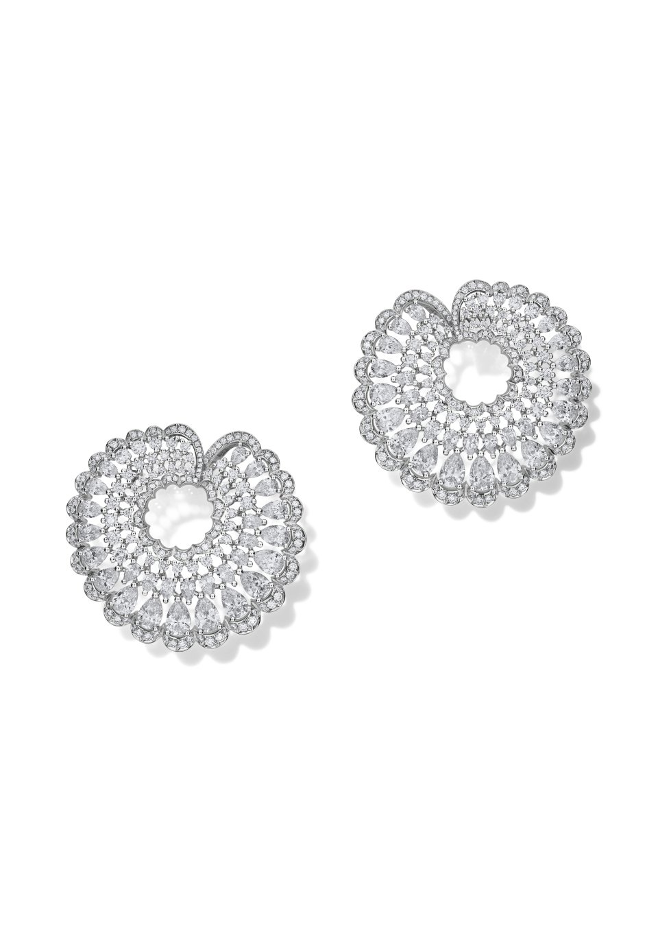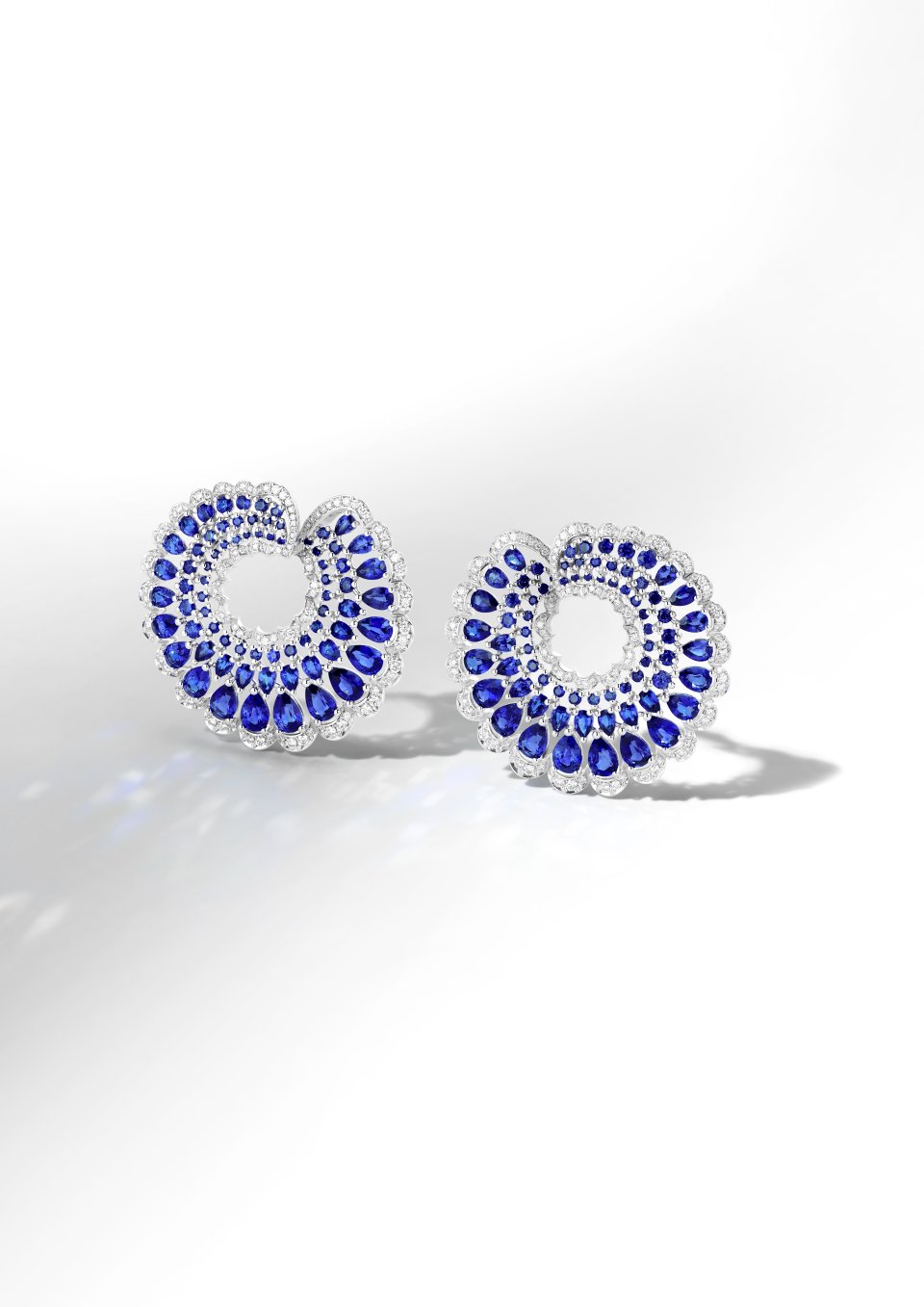 メゾンはまた、耳元を優しく包み込むエレガントな円形シルエットを描く2組のイヤリングを発表します。わずかな“ひねり”を加えたラインが、コレクションの特徴であるオープンワークのモチーフと響き合います。ひとつはサファイアとダイヤモンドを交互に配したデザイン、そしてもうひとつは全面にダイヤモンドをセットしたモデルで構成されています。造形美が際立つ曲線で編み上げられたこれらのイヤリングは、「プレシャス レース」の真髄を体現しています。時代を超越した普遍の美しさを放ちながらも、驚くほどに軽やかな着け心地を兼ね備え、まるでオートクチュールのドレスを纏うかのように、肌の上で優雅に浮かび上がります。