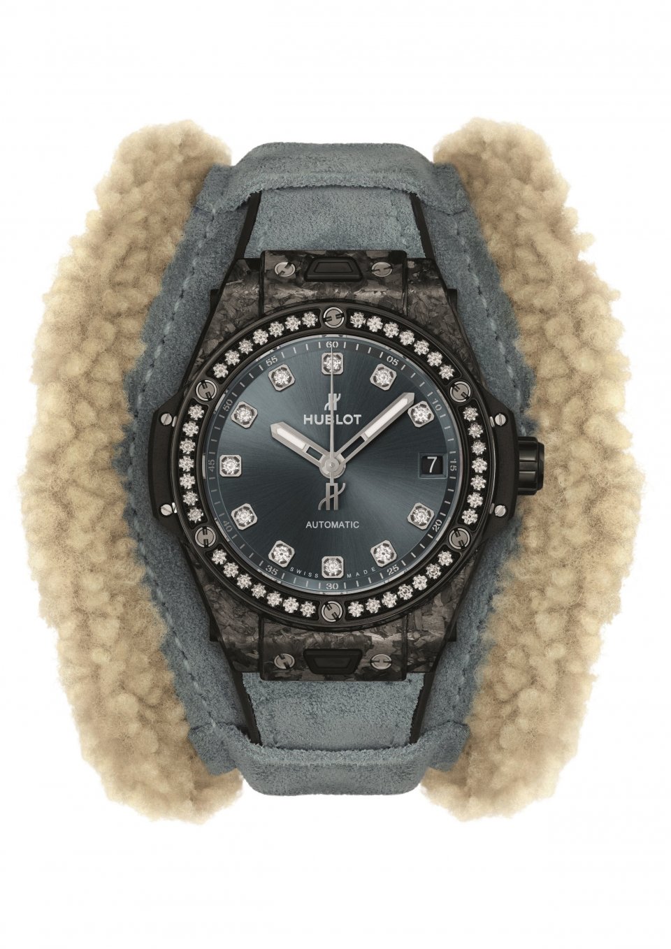 特別なカドリーカフに加えて、ウブロ「ビッグ・バン アルプス」にはアイスブルーカラーのシープスキン製とカーフ製の2本のワンクリックストラップが付属しています。これらは、ウィンタースタイルを仕上げる完璧なアイテムとなることでしょう。