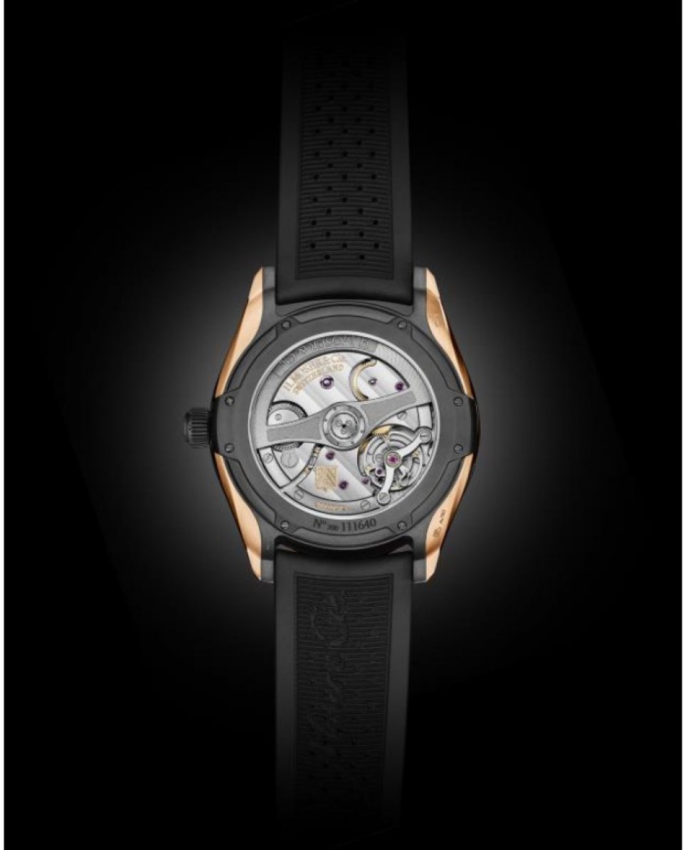 快適な着け心地で、普段使い用に設計されたパイオニア トゥールビヨンとパイオニア・センターセコンドは、業界の中でもエレガントで大胆そして現代的なデザインが際立つものとなっています。120 m の防水性を備えたこの 2 つのモデルはパイオニア ファミリーの一員で、5N レッドゴールドの耐久性に優れたケースにブラック DLC コーティング チタンのインサートがあしらわれています。