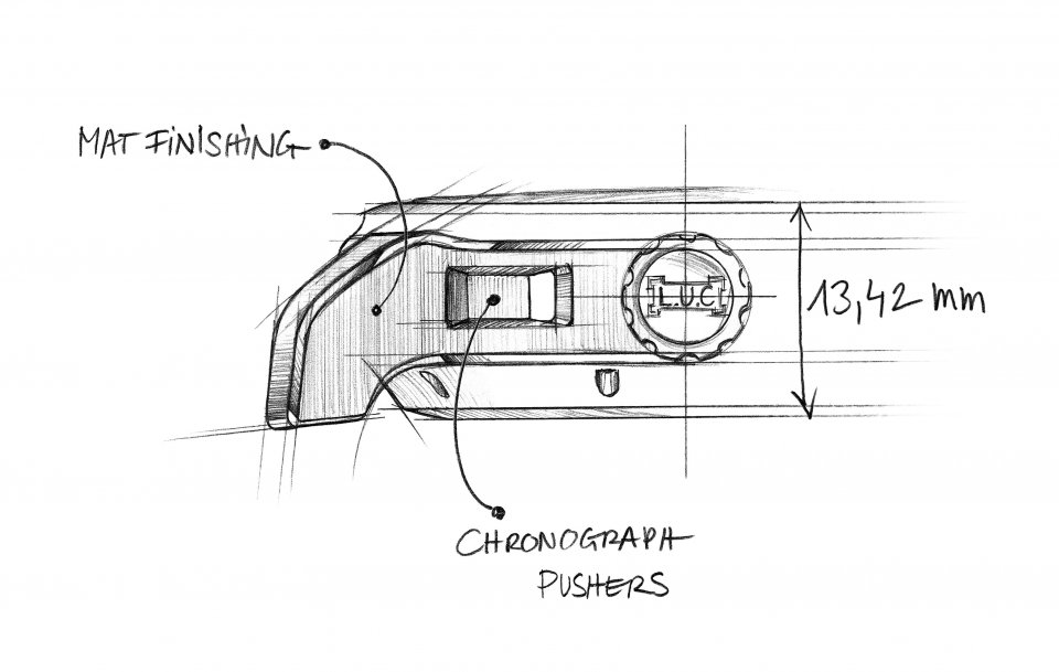 ローズゴールドやホワイトゴールドといったプレシャスメタル製、直径44mmの数々のクロノグラフウォッチ「L.U.C クロノ ワン」に続いて、そのノウハウを新しい装い、新しいスタイルへと活用させています。よりモダンなデザインを描き、現代の素材で製造されたL.U.C クロノ ワン フライバックの2種類のモデルは、直径42mm、厚さ13.42mmに設計されています。このケースは多機能性と構造品質を保証するために100mの防水性を備えています。またL.U.C クロノ ワン フライバックは、ルミノバを塗布したドーフィンフュゼ型針、ファセットカットを施した矢印型のインデックス、すらりとしたシンプルなタイポグラフィー、12時位置の下に「L.U.Chopard」のシグネチャー、その下にL.U.Cコレクションによって築かれた絶対的精度を示す「Chronometer」の文字など、全L.U.Cコレクションに共通した美的ディテールを宿しています。