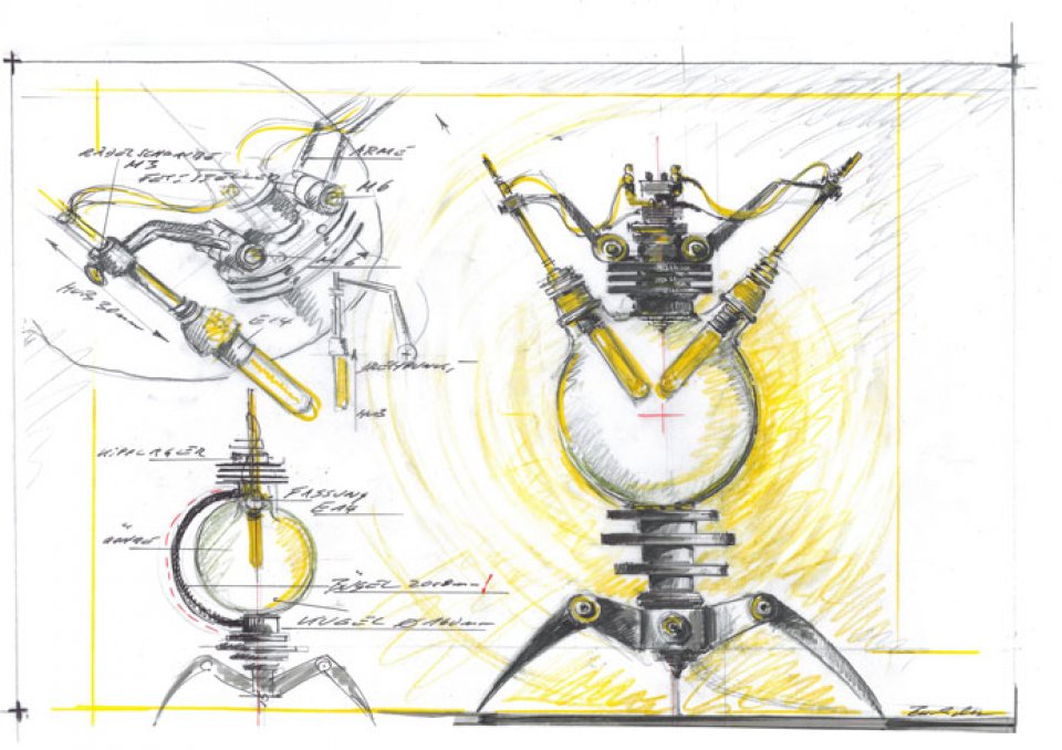 ブッフバルトが、自らの彫りが生み出す光のデザインの方向が合っていると感じるまでには長い時間が必要で、完全に満足したと言えるまでにはさらに長い時間を要した。「個々のランプの模型は、着想を得たときに思いつくまま設計したものではありません。」と説明する。 「理解し難いが意味のある形を実現しようと、長い間暗中模索したというべきでしょう。」