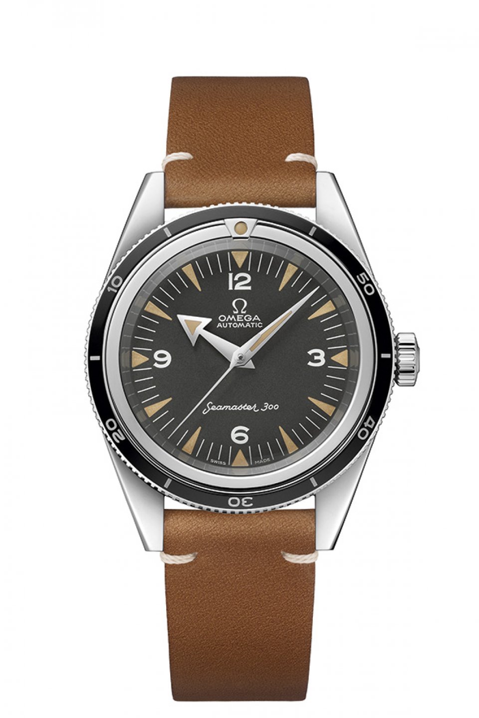 3 つのモデルはブラッシュ&ポリッシュ仕上げが施されたステンレススティール製ケースで、ブラック トロピカルダイアルと称される、経年変化したような風合いのダイアルが特徴です。ステンレス スティール製ブレスレットは強度が増し、クラスプにはヴィンテージ調のオメガのロゴをあしらい、この ロゴはそれぞれのモデルで異なるスタイルとなっています。これは、1950 年代当時はまだサプライヤーが ロゴに対して思い思いの解釈をしていたことを、遊び心をもって表現したからです。