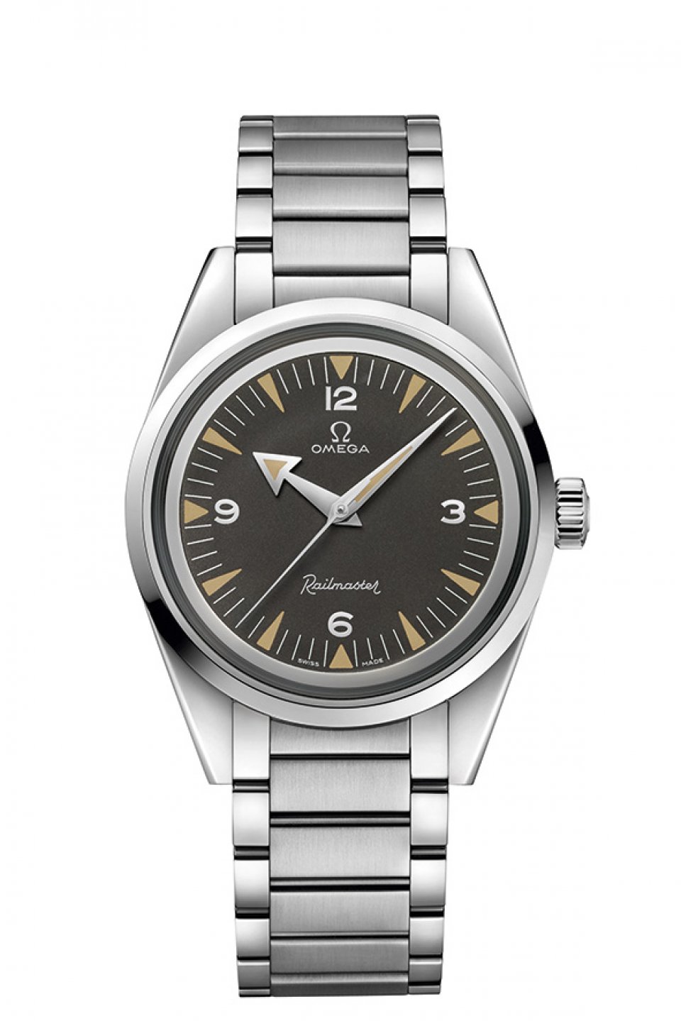 デザインに限っていえば、オリジナルモデルのレイルマスターは控えめでした。シンプルで実用的であり ながら、少しばかりのエレガントさも併せもったこのモデルは、仕事で着用することを想定して作られた ものです。二重ケースの耐磁性腕時計は、科学者、技術者、磁場の近くで働く人たちのために設計されま した。オリジナルモデルの控えめなスタイルは、レイルマスター マスター クロノメーター 60 周年リミ テッド エディションにも引き継がれています。ただし、より多くのスーパールミノヴァを充填して強い光 を放てるようにするために、インデックスはヴィンテージ版よりもわずかに深さがあります。マスター クロノメーター キャリバー8806 を搭載し、15,000 ガウスの耐磁性能、および 4 年の国際保証を備えて います。