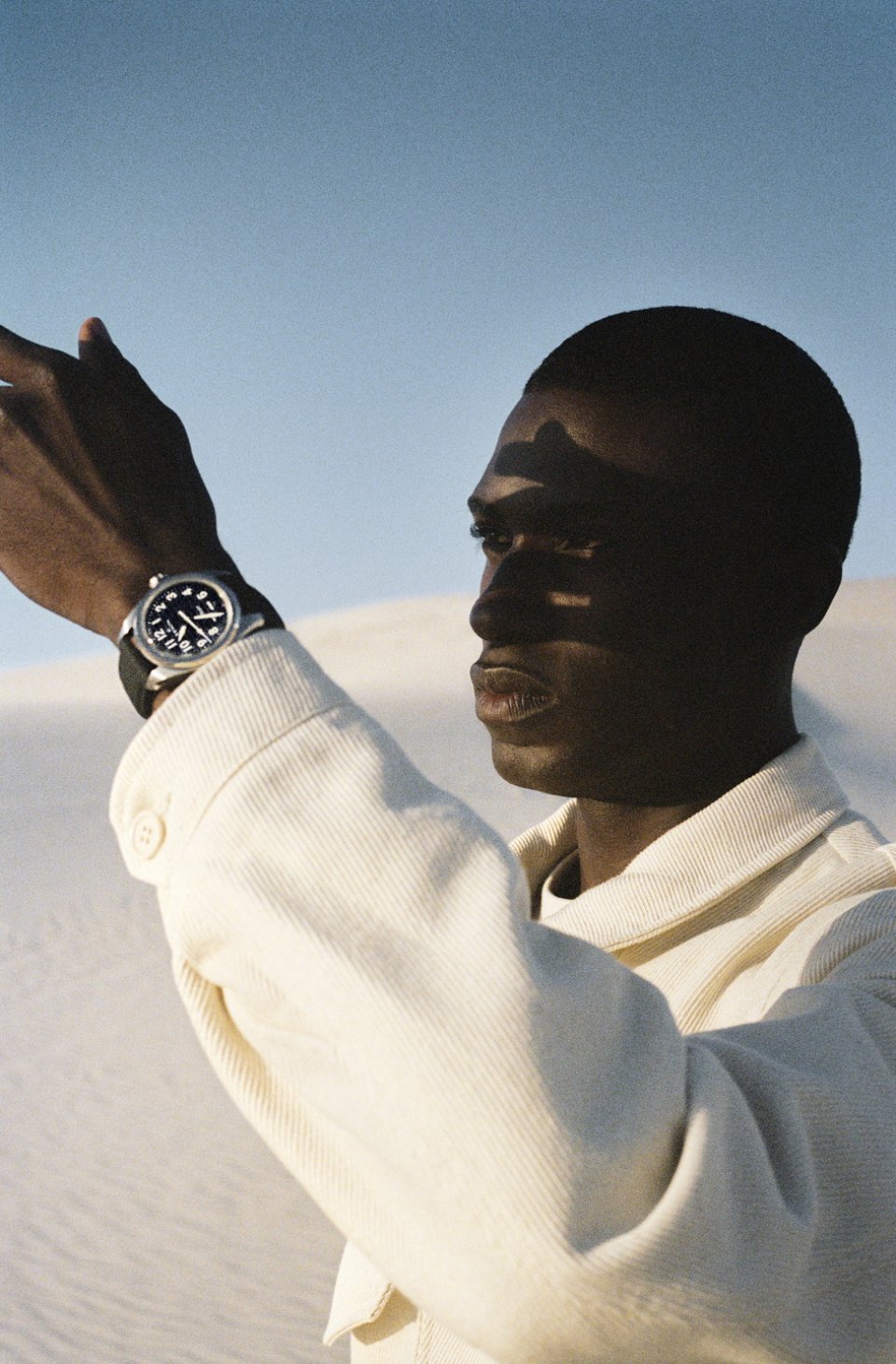付属のストラップも、パイロット オートマティックの2つのバージョンそれぞれが持つ特性と完璧にマッチしています。ブラックセラミック製バージョンには、パイロットのために新たに開発されたフォールディングバックルを備えたブラックのさりげないコーデュラ・エフェクト ラバーストラップと、より実用的なカーキカラーのコーデュラ・エフェクト ラバーストラップが付属しています。スチール製のモデルには、同じブラックのコーデュラ・エフェクト ラバーストラップが付属していますが、セカンドストラップはブラウンのカーフスキン製。フライトジャケットやグローブ、ハットなど、ヴィンテージ パイロットによく見られる道具を連想させます。ストラップの交換は、ストラップの裏側に直接組み込まれたクイックリリース機構によって簡単に行うことができ、ストラップを固定しているバネ棒から工具を使わずに簡単に取り外すことができます。