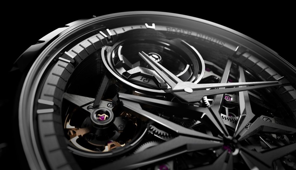 キャリバーのデザインだけでなく、ロジェ・デュブイはマイクロローターにも注目しました。過去10 年間、私たちが小型化に注力し、技術的な熟練度を高める中で、時計職人たちは美的デザインを発展させ、新たな挑戦に挑むことができました。完全にスケルトン化された伝統的な高機能エレメントは、今や時計のデザインに不可欠な要素です。これによりキャリバーの構造強化、ビジュアルの充実、さらに軽さがもたらされています。