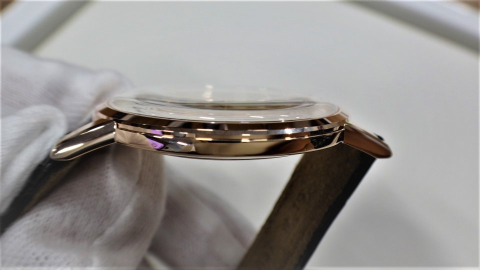 レギュラーモデル(18Kピンクゴールドモデル)は、ダイヤルに沿って曲げた極細のインデックスを採用し、視認性を一層向上させています。