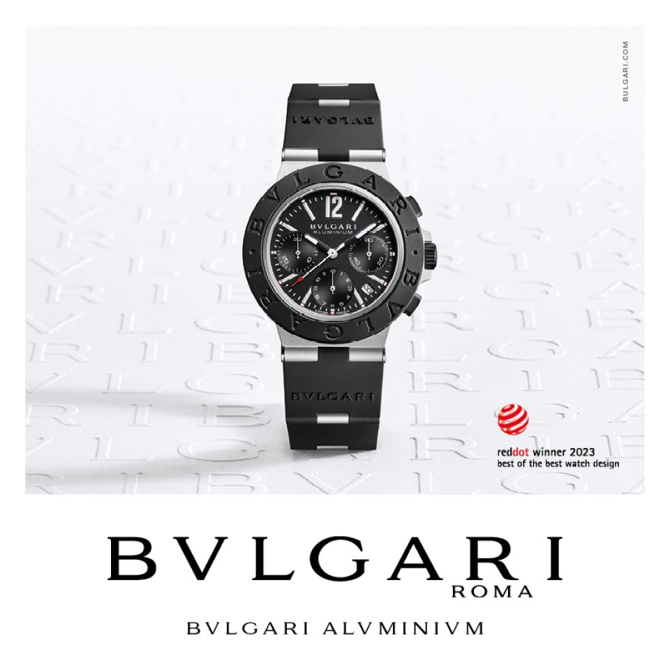 ドイツのノルトライン・ヴェストファーレン・デザインセンターが主催するレッド・ドット・デザイン賞は60年以上にわたる歴史を持ち、「プロダクトデザイン」「コミュニケーションデザイン」「デザインコンセプト」3つの部門でデザインの革新性、機能性、人間工学、エコロジー、耐久性などの基準で審査される最もプレステージ性が高い世界最大級の国際デザインコンペティションです。そしてエントリーした全アイテムのうちごく限られたアイテムにだけ授与されるベスト・オブ・ザ・ベストを、このたび「ブルガリ アルミニウム クロノグラフ」が受賞しました。これにより、このウォッチの卓越したデザイン、アイコニックなステータス、クールでエッジの効いた雰囲気などが改めて広く認識されました。