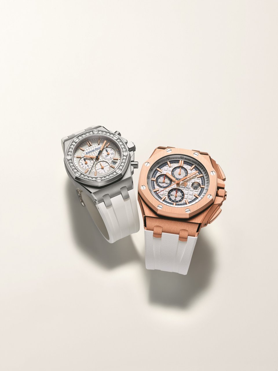 今夏、ビブロスの記念モデルとしてロイヤル オーク オフショアのレディースのステンレススティール・ダイヤモンドセッティングモデルとメンズのピンクゴールドモデルの2つのモデルが登場します。