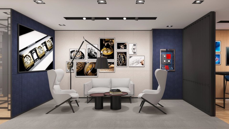 デザインは自然素材のウッドとブラックスティールのハイブリットがコンセプトです。この革新的な素材の組み合わせをエレガントな色調で仕上げることにより、ブランドのDNAを体現しタイムピースを引き立てます。この温かみのある落ち着いた店内で、居心地の良い時間をお過ごしいただけます。