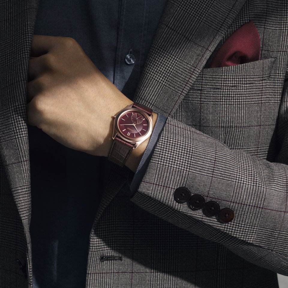 スモールセコンドに⾰バンドをあわせたクラシカルでエレガントなデザインをさらに引き⽴てるカラーリングの限定2モデルが登場。