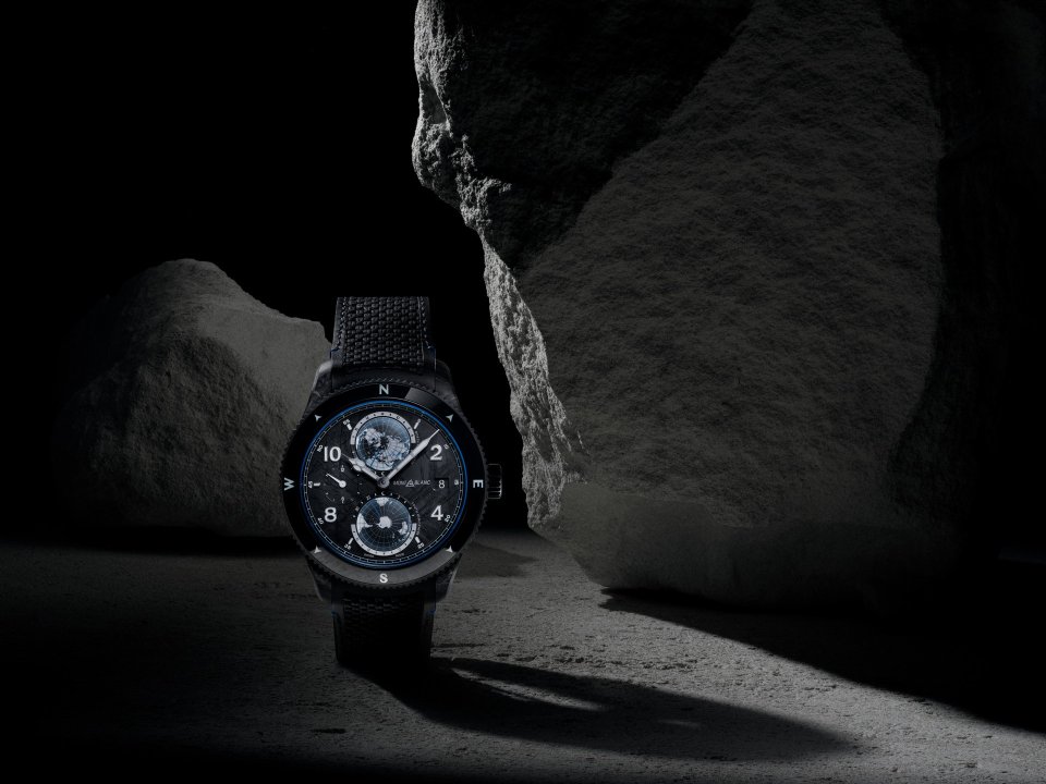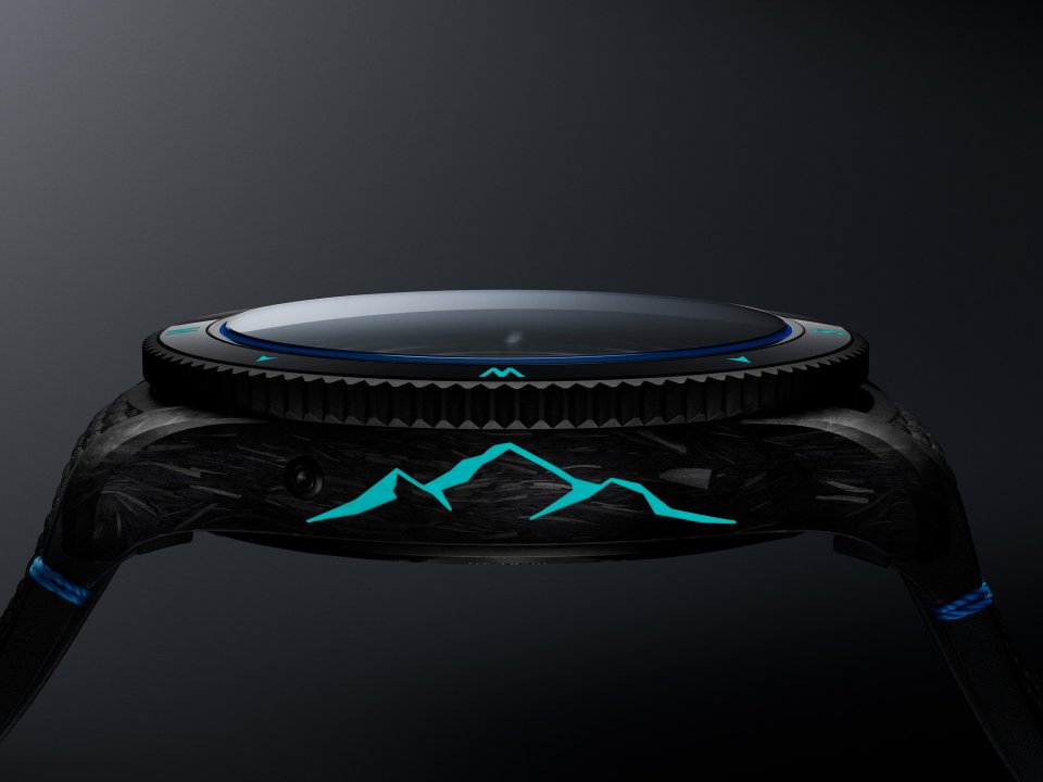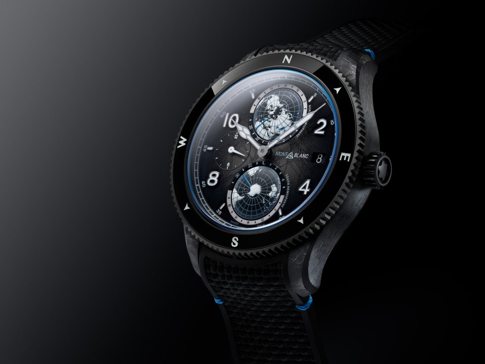 モンブラン「1858 ジオスフェール ゼロ オキシジェン CARBO2」~青く発光するモンブラン山の輪郭を刻んだCARBO2製ミドルケースが特徴の最新リミテッド エディション
