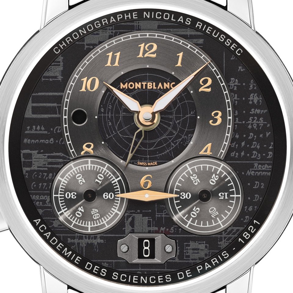 現代までに話を進めると、2007年、モンブランは、ニコラ・リューセックの技術を応用し、初の自社製ムーブメントが特徴の魅力的な腕時計を発表しました。リューセックのデザイン構造は、60秒の経過時間と30分を表示する、水平に並ぶ2つのクロノグラフカウンターへと形を変えました。回転する針を持つ固定されたカウンターの代わりに、カウンター自体が回転し、2つのカウンターの間の単一のインデックスマーカーが経過時間を表示します。