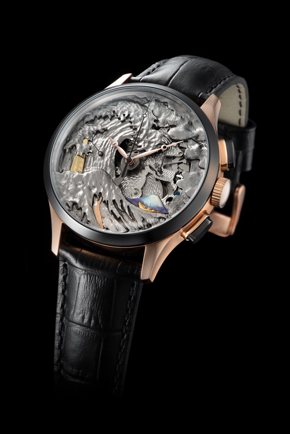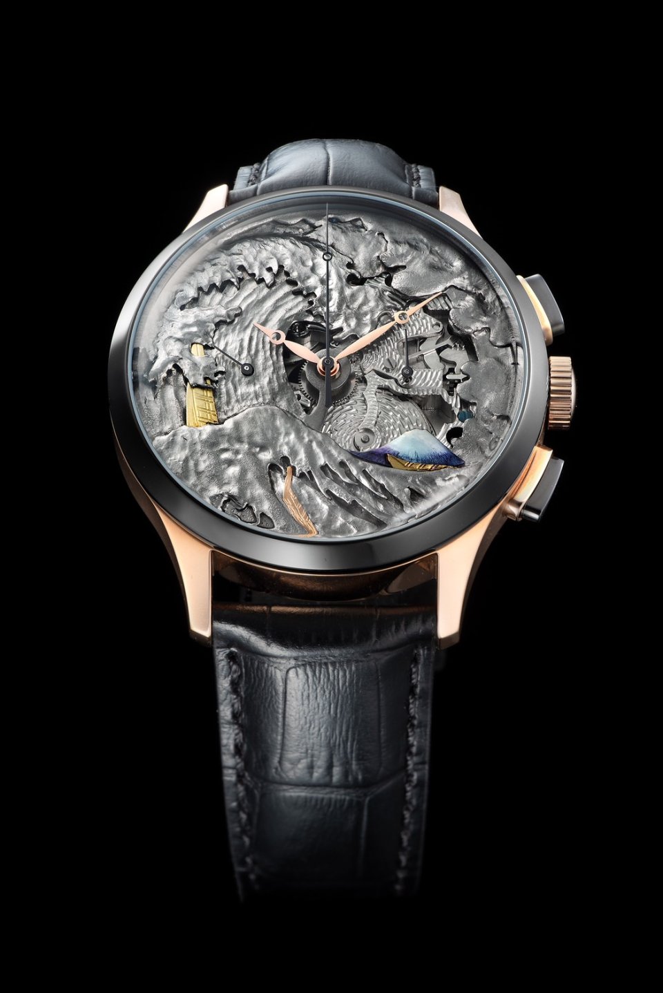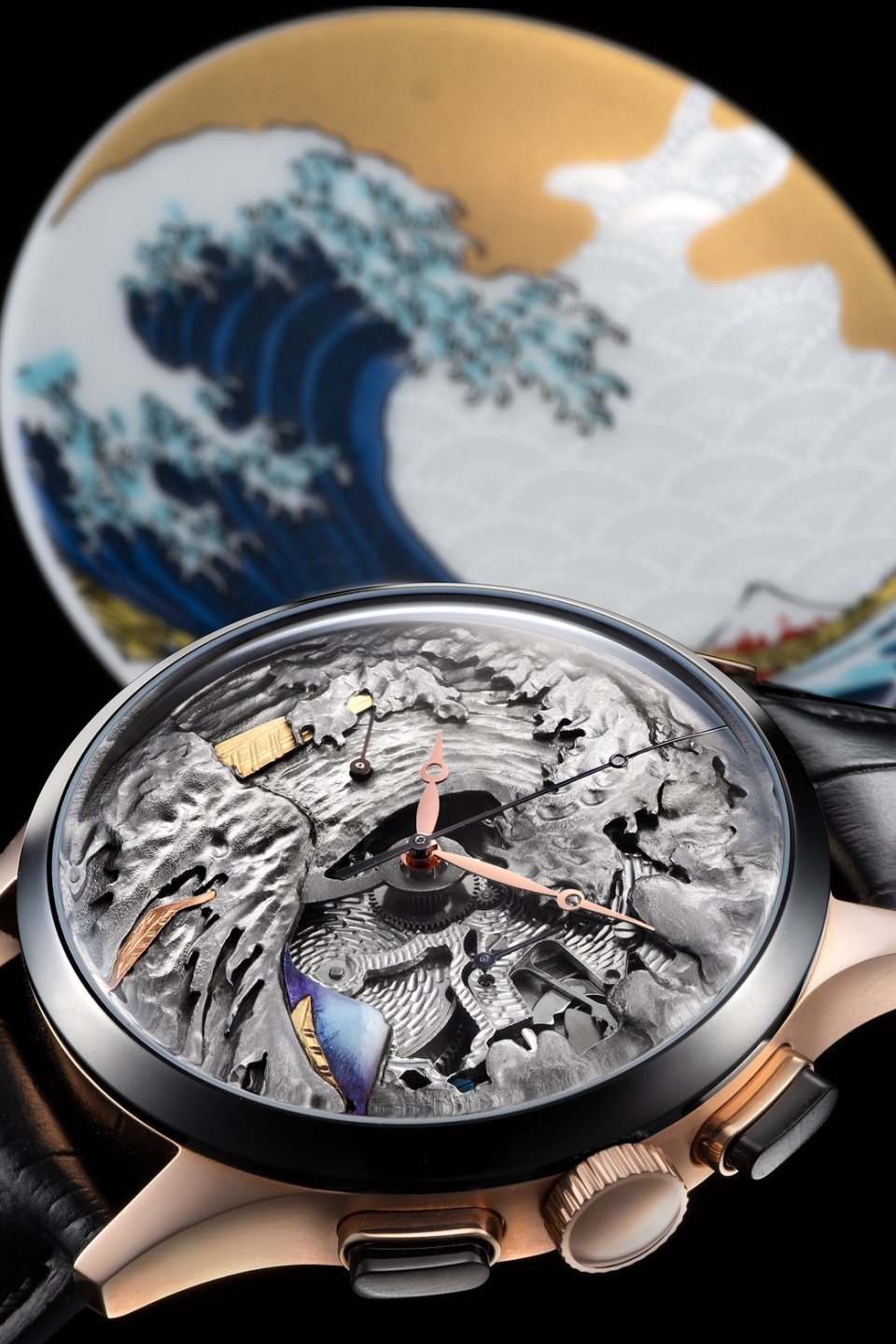 From : STURMANSKIE (シュトゥルマンスキー)【シュトゥルマンスキー】葛飾北斎の「葛飾北斎 富嶽三十六景 神奈川沖浪裏」を彫金師の手作業で再現した芸術的な腕時計を発表