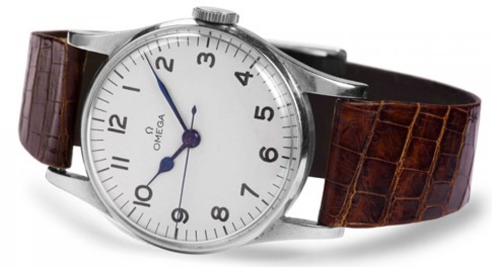 第二次世界大戦が終わりに近づき、戦闘が太平洋へと向かうと、オメガの別の時計が 使われるようになりました。CK2444はその優れた耐水性で知られており、実際にこの時計のケースバックには、イギリス国防省により“防水腕時計Waterproof Wrist Watch)”の略である“w.w.w”の文字が刻まれました。また、ダイアルとケースバックには、英国軍特有のブロードアロー(太矢じり)の印がつけられていました。